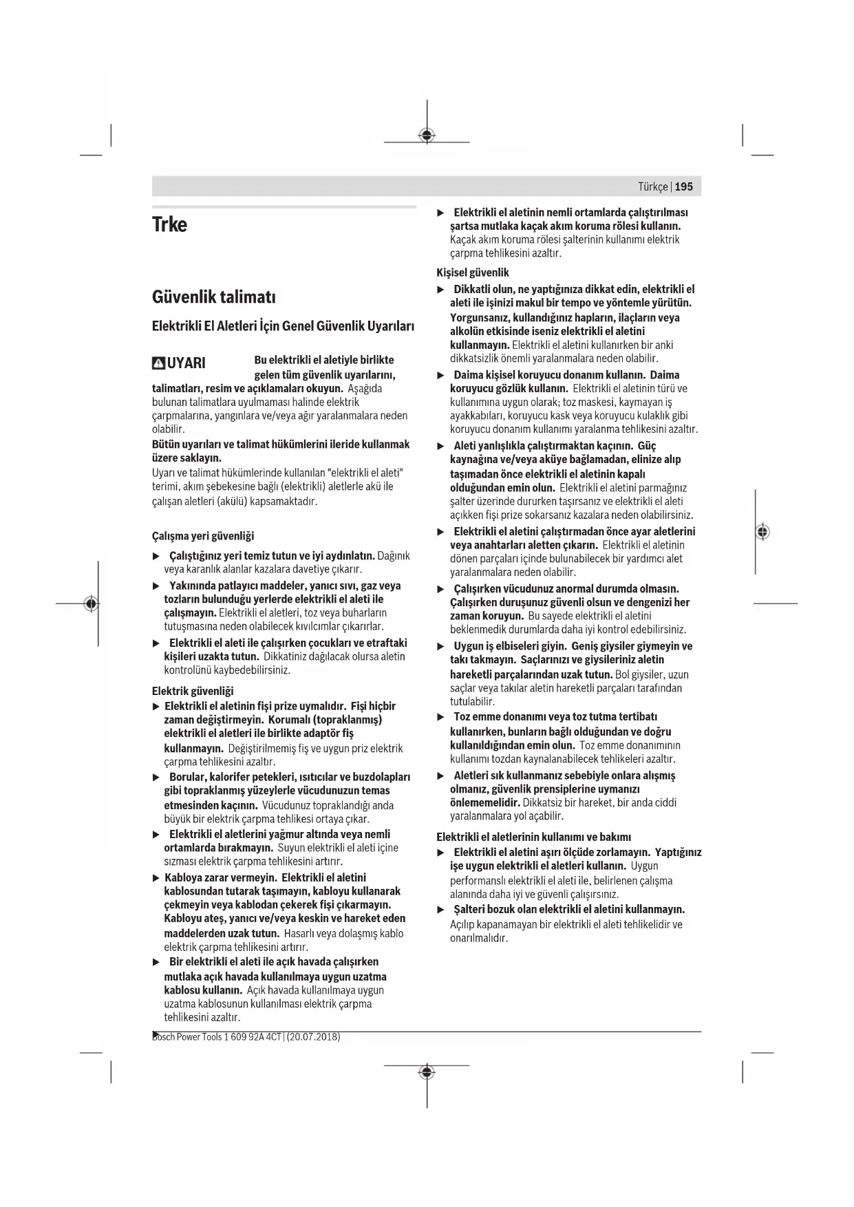 UYARI Bu elektrikli el aletiyle birlikte