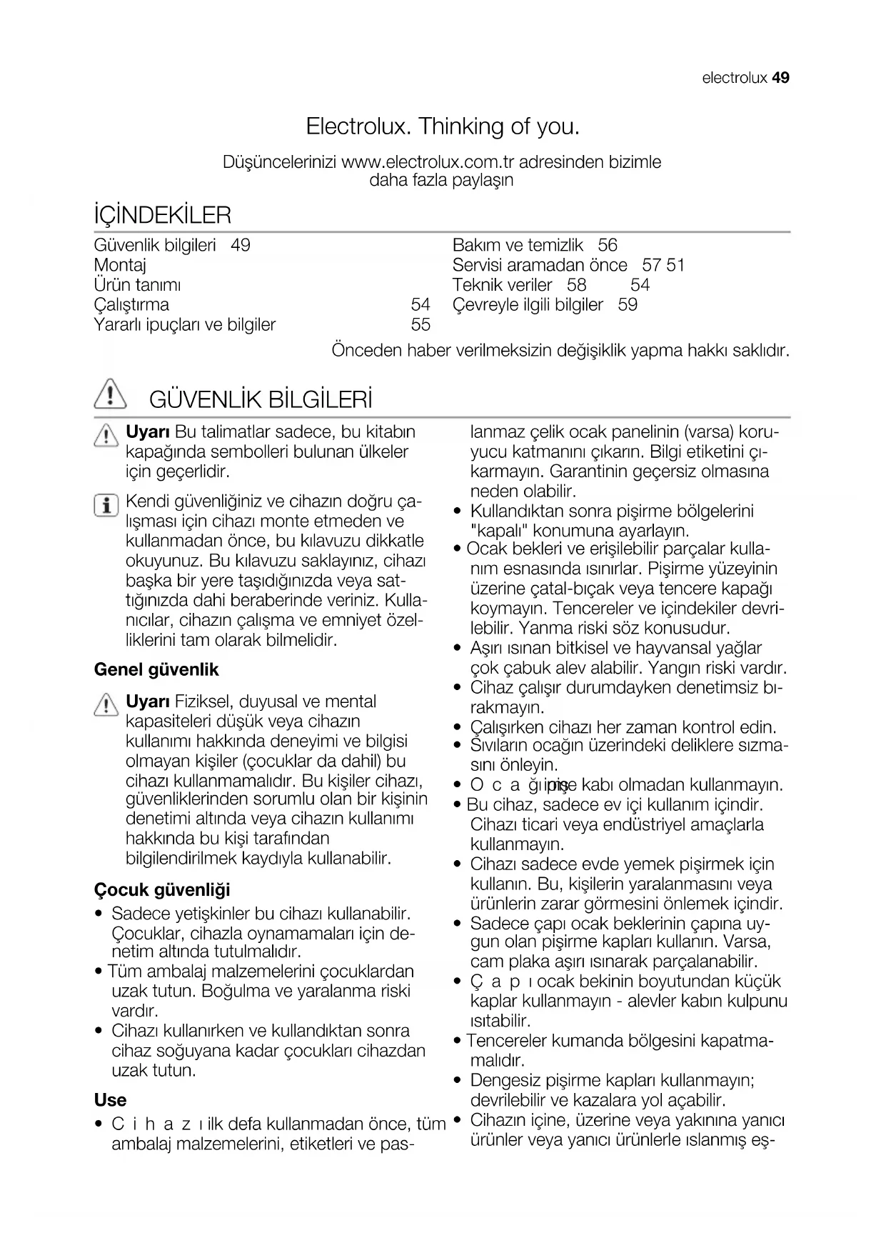 İÇİNDEKİLER Güvenlik bilgileri 49