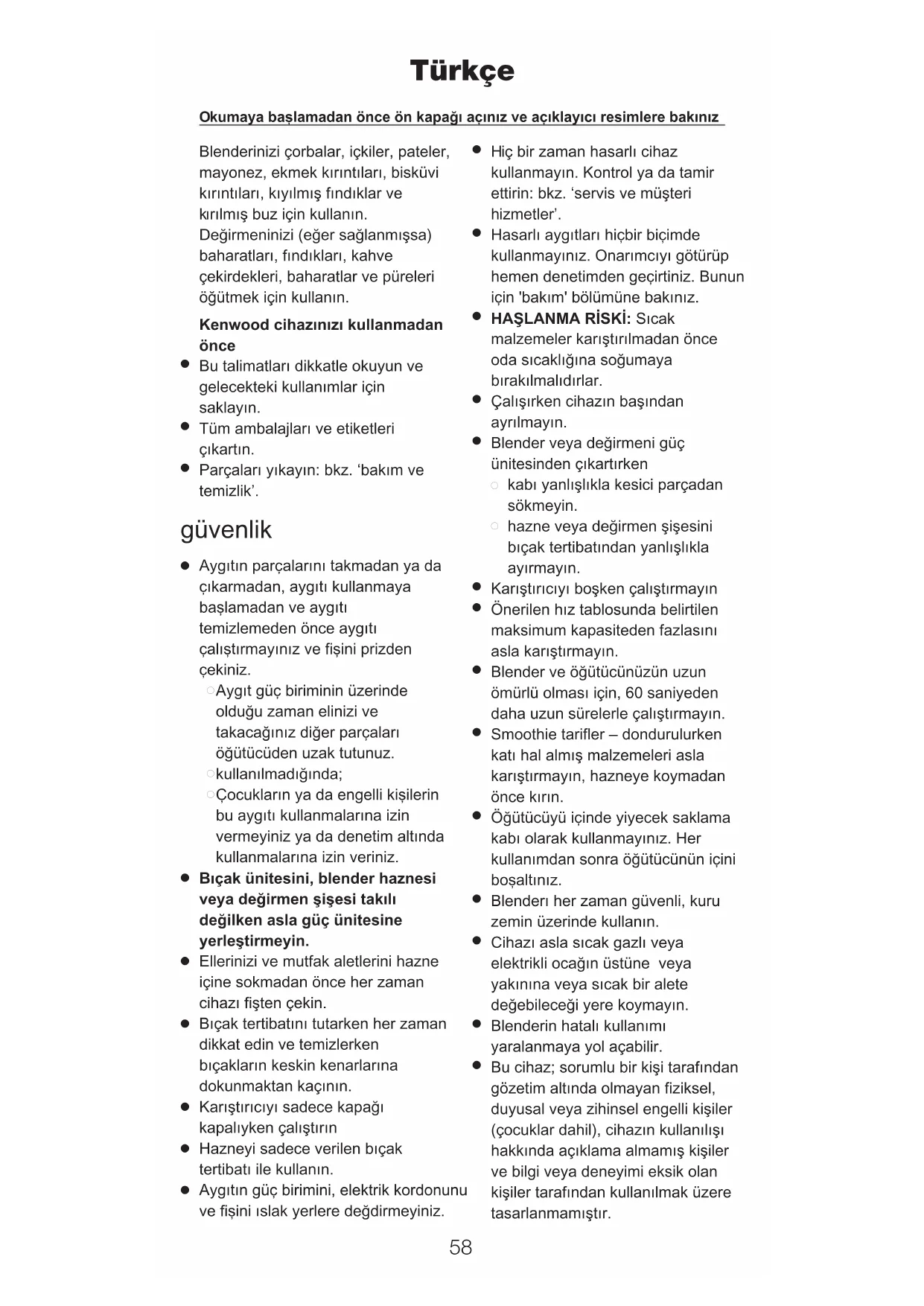 Kenwood cihazınızı kullanmadan