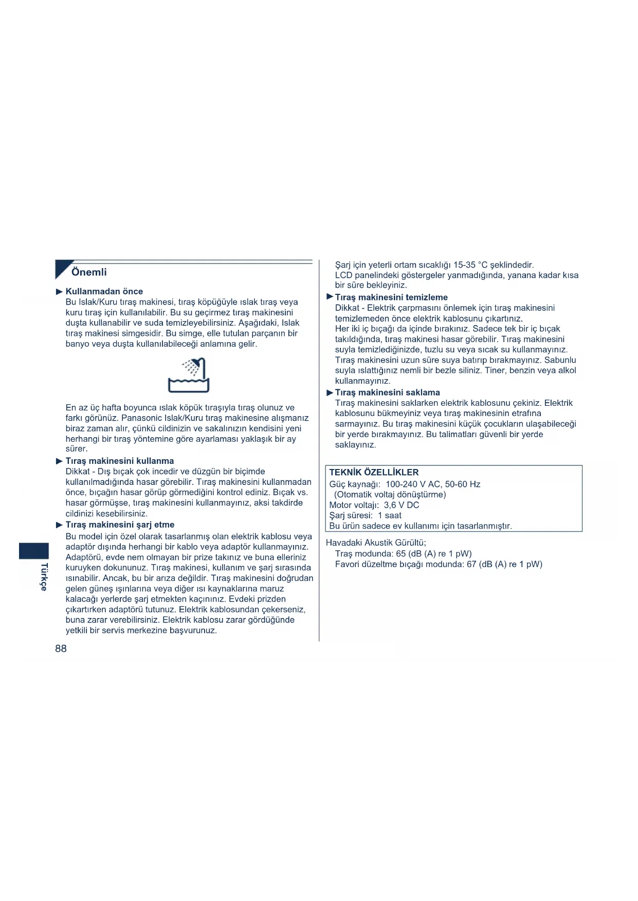 Dikkat - Elektrik çarpmasını önlemek için tıraş makinesini