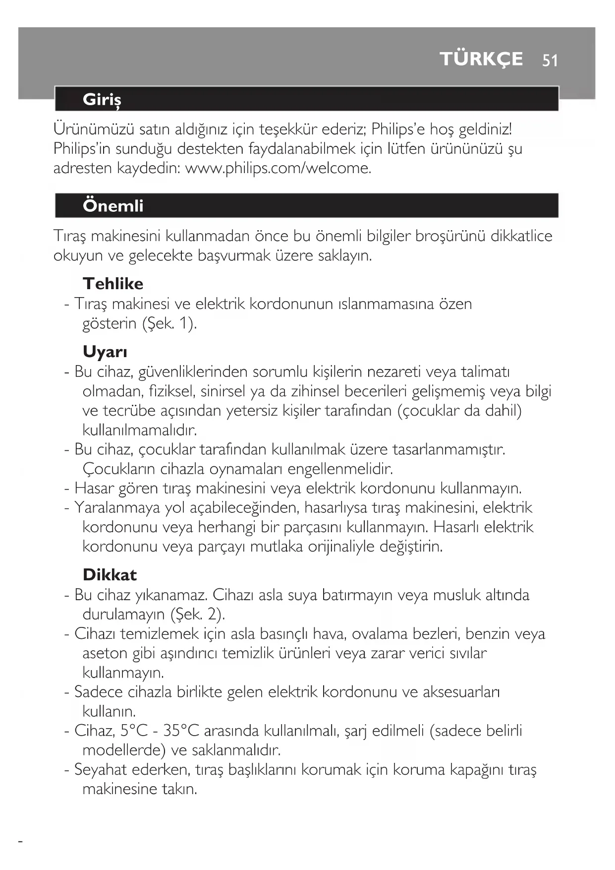 Tıraş makinesini kullanmadan önce bu önemli bilgiler broşürünü dikkatlice