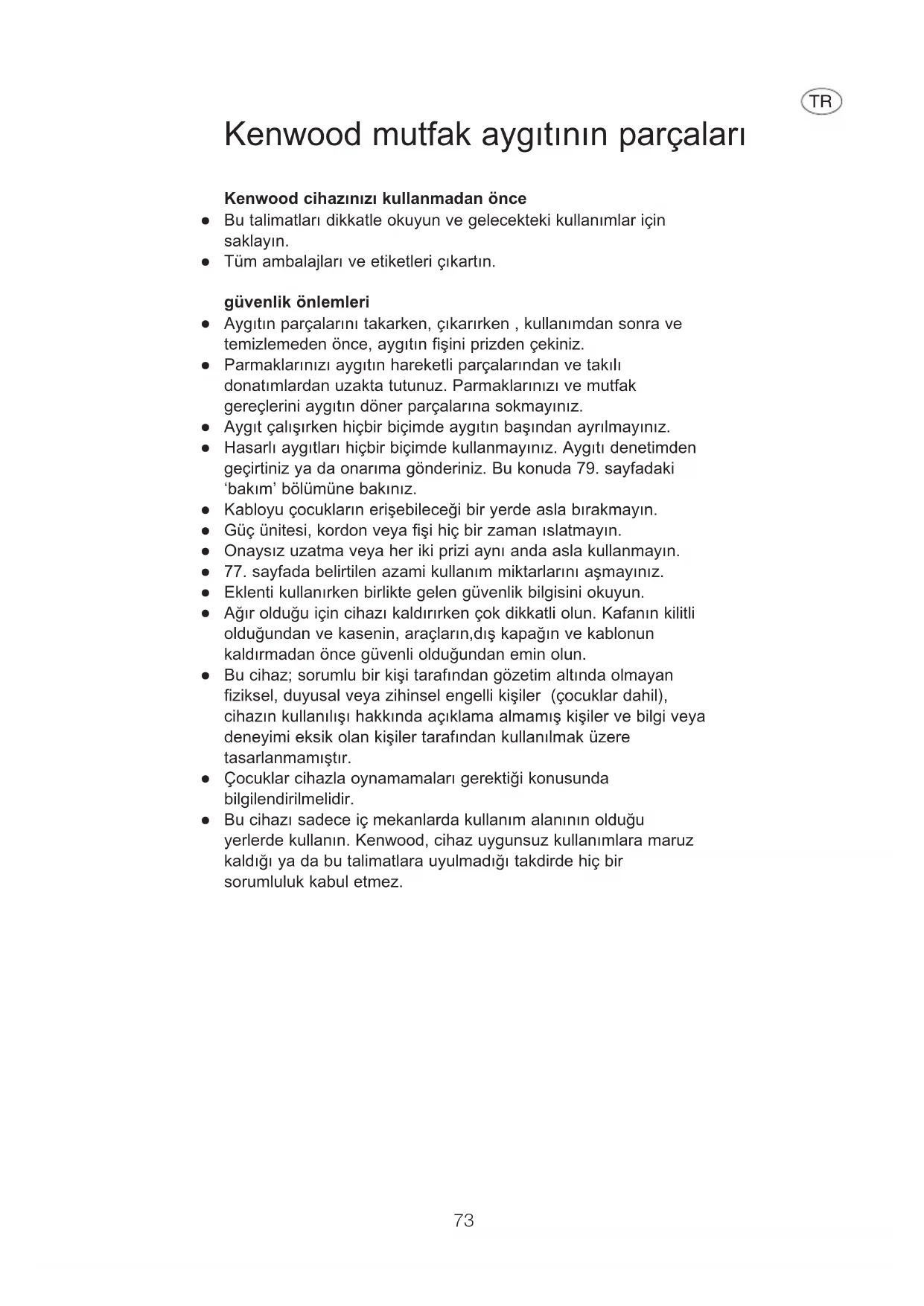 Kenwood cihazınızı kullanmadan önce