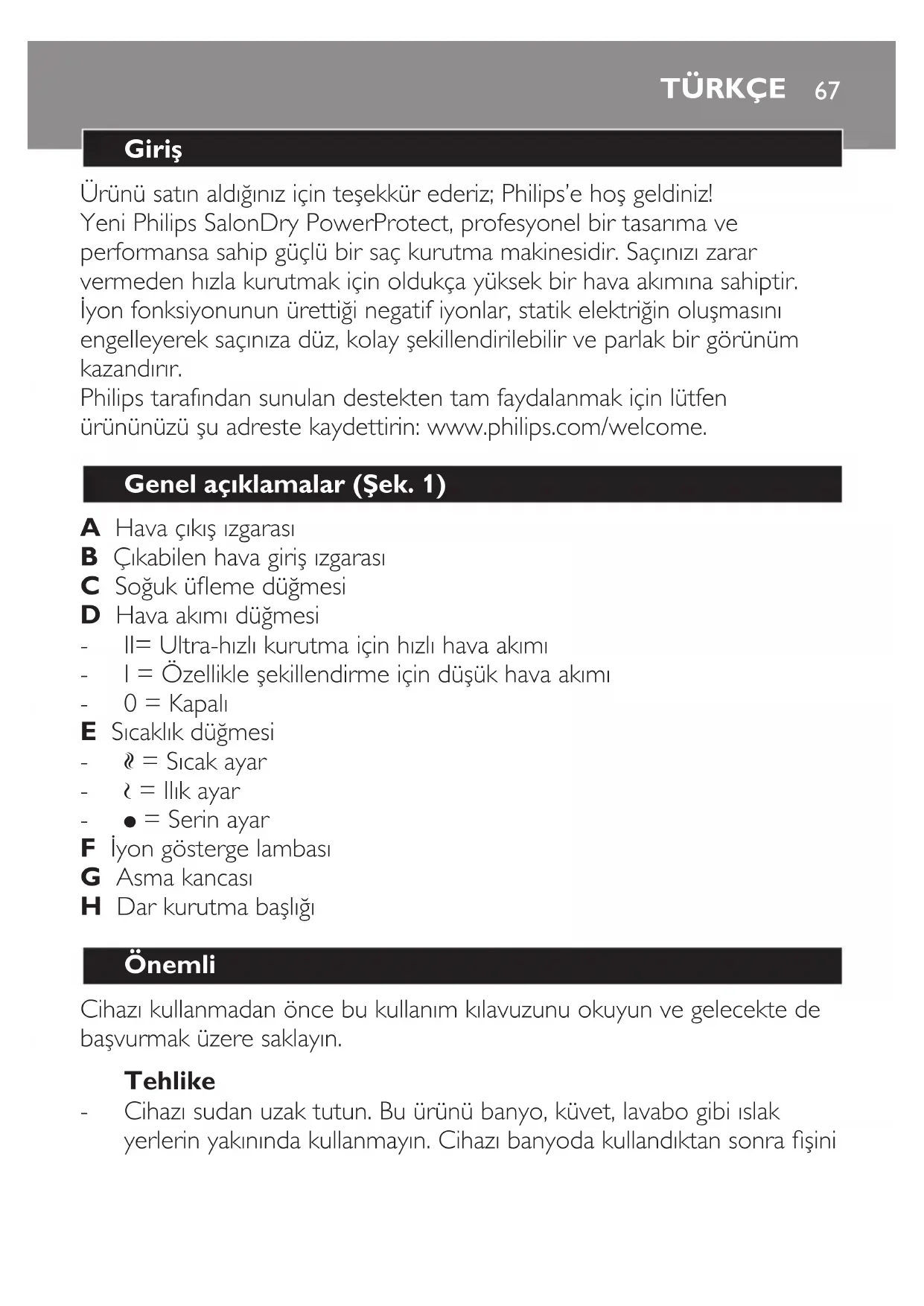 TÜRKÇE68Cihaz sadece saç kurutmak üzere kullanılmak içindir.