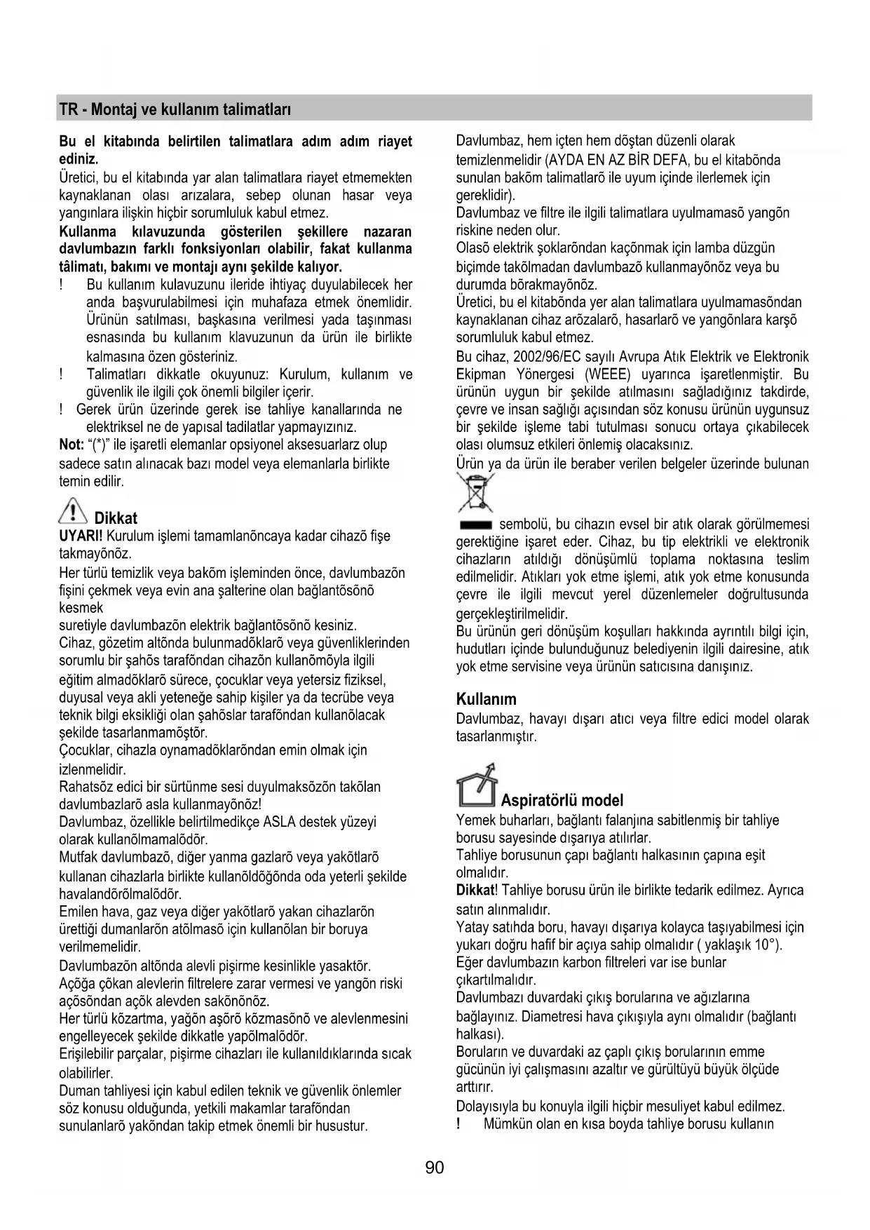 davlumbazlarõ asla kullanmayõnõz!
