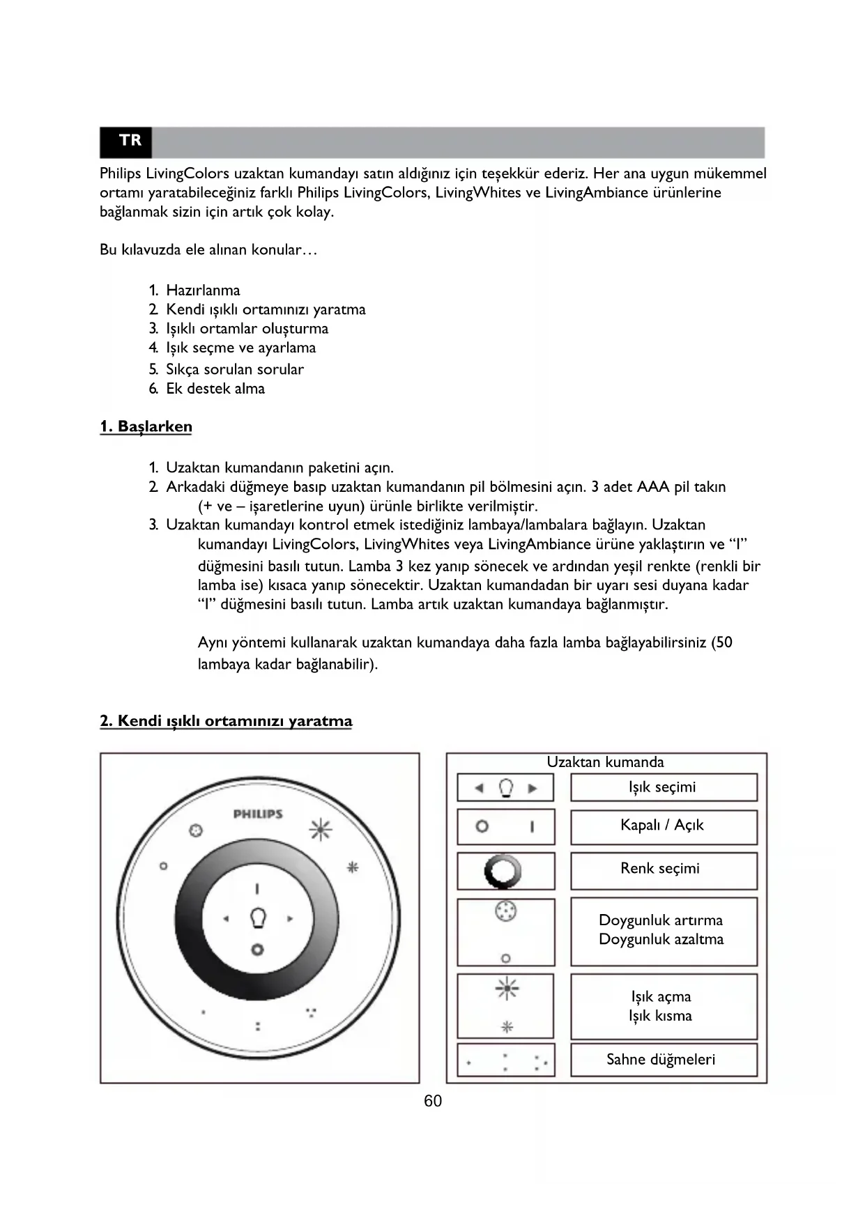 TR Philips LivingColors uzaktan kumandayı satın aldığınız için teşekkür ederiz. Her ana uygun mükemmel