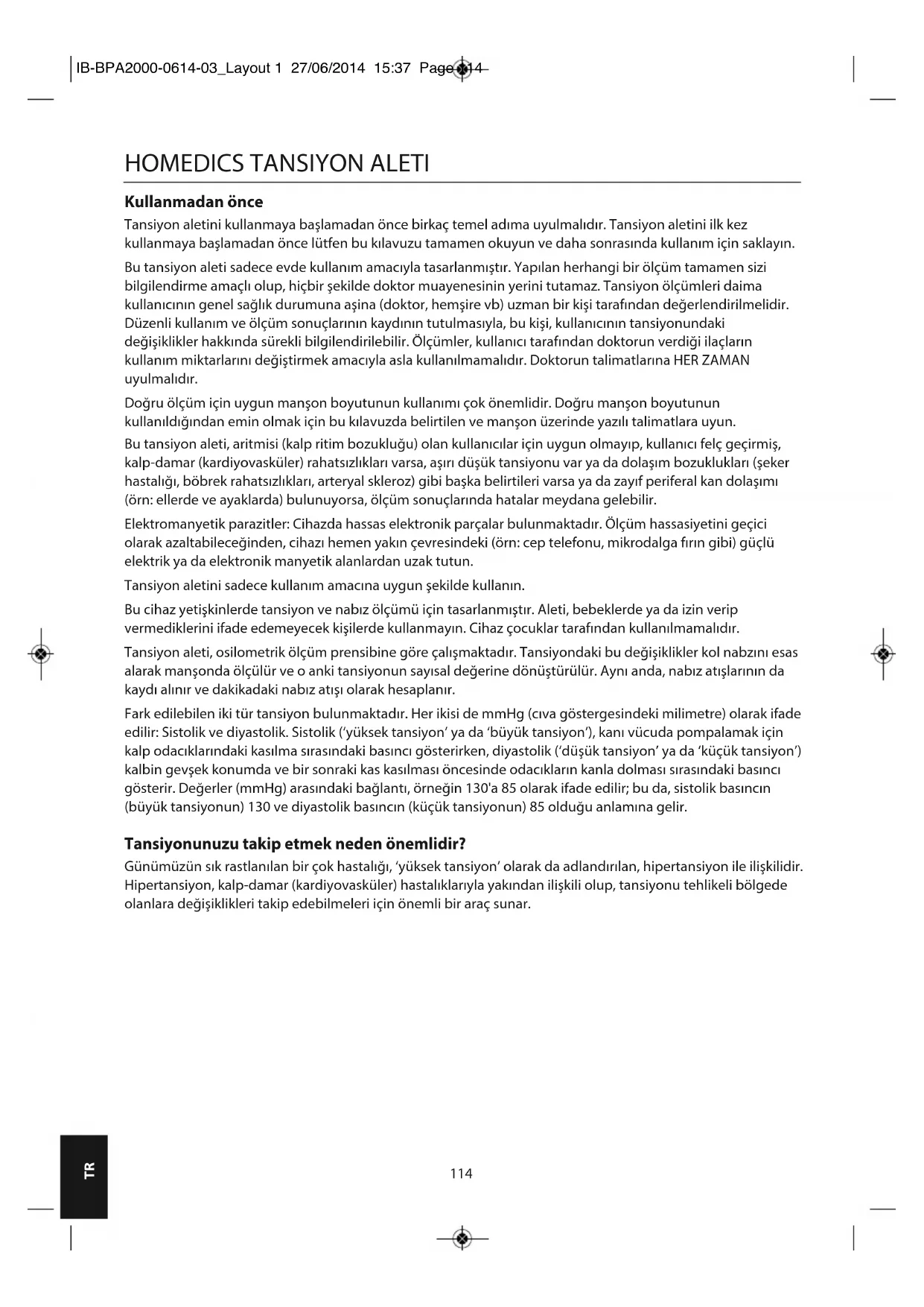 TR HOMEDICS TANSIYON ALETI Kullanmadan önce