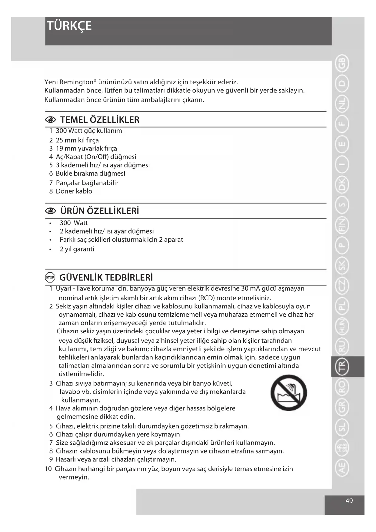 TÜRKÇE Yeni Remington® ürününüzü satın aldığınız için teşekkür ederiz.