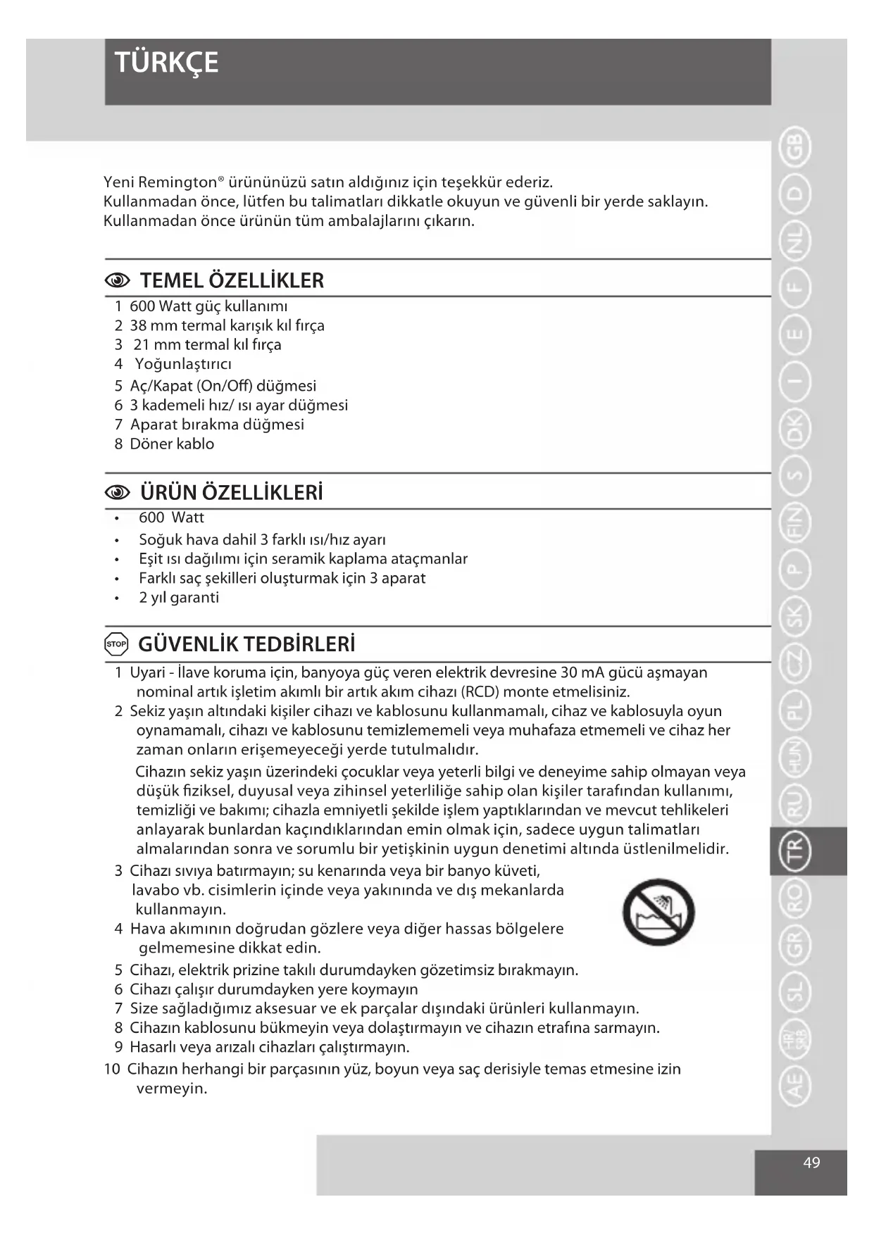 TÜRKÇE Yeni Remington® ürününüzü satın aldığınız için teşekkür ederiz.