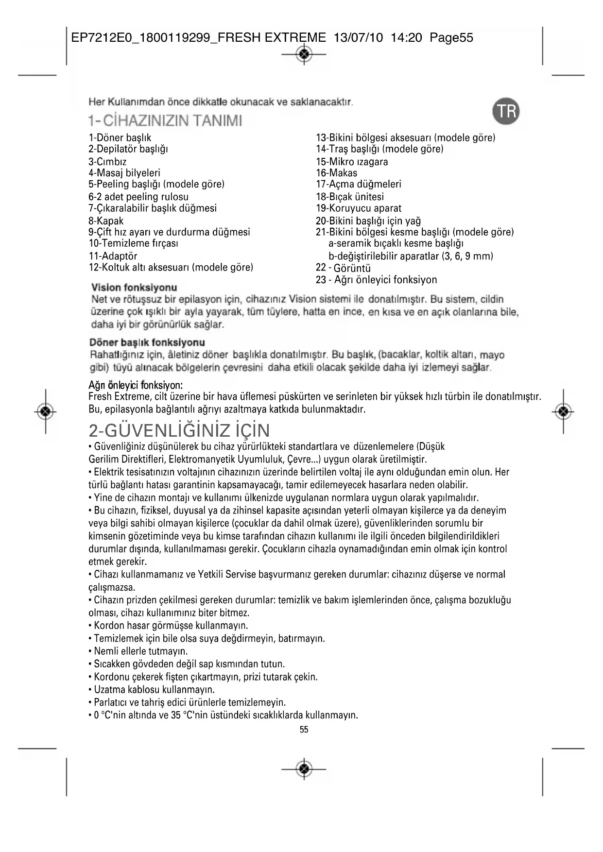 - Tüylerin tamamen temizlenmesi için ayrıca koruyucu başlık