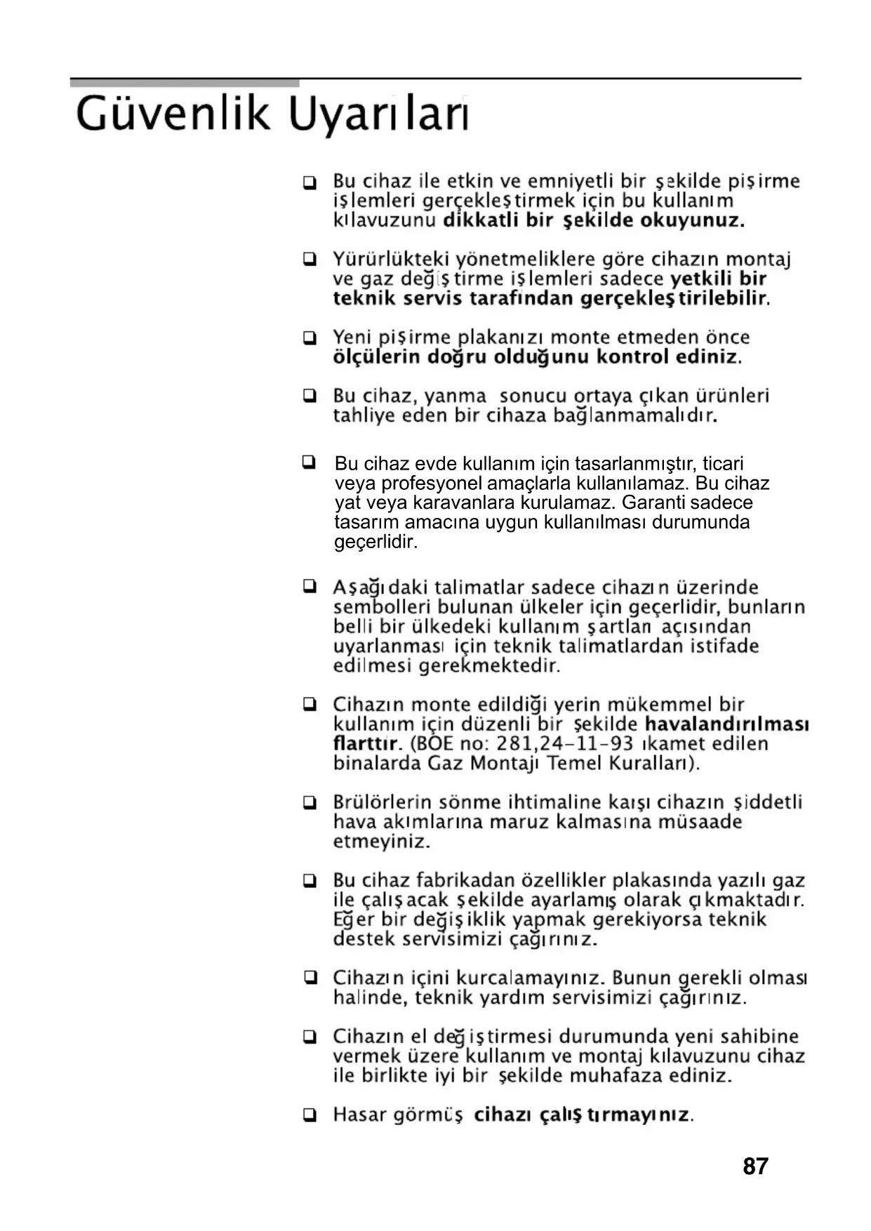 DAHA ÖNCE BELİRTİLMİŞ OLAN GÜVENLİK UY ARILARINA UYULMAMASI HALİNDE,