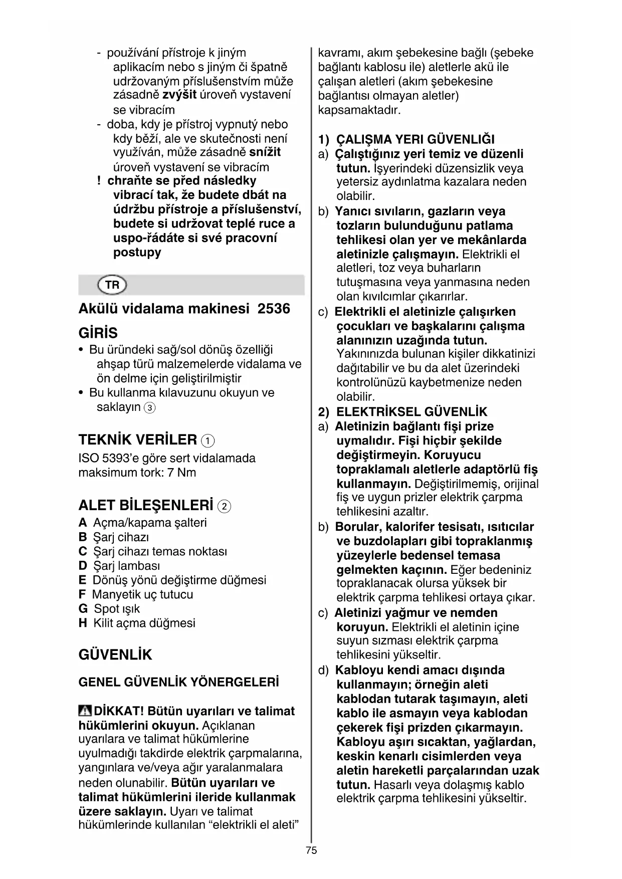 DİKKAT! Bütün uyarıları ve talimat hükümlerini okuyun. Açıklanan uyarılara ve talimat hükümlerine uyulmadığı takdirde elektrik çarpmalarına, yangınlara ve/veya ağır yaralanmalara neden olunabilir. Bütün uyarıları ve talimat hükümlerini ileride kullanmak üzere saklayın. Uyarı ve talimat hükümlerinde kullanılan “elektrikli el aleti” kavramı, akım şebekesine bağlı (şebeke bağlantı kablosu ile) aletlerle akü ile çalışan aletleri (akım şebekesine bağlantısı olmayan aletler) kapsamaktadır.