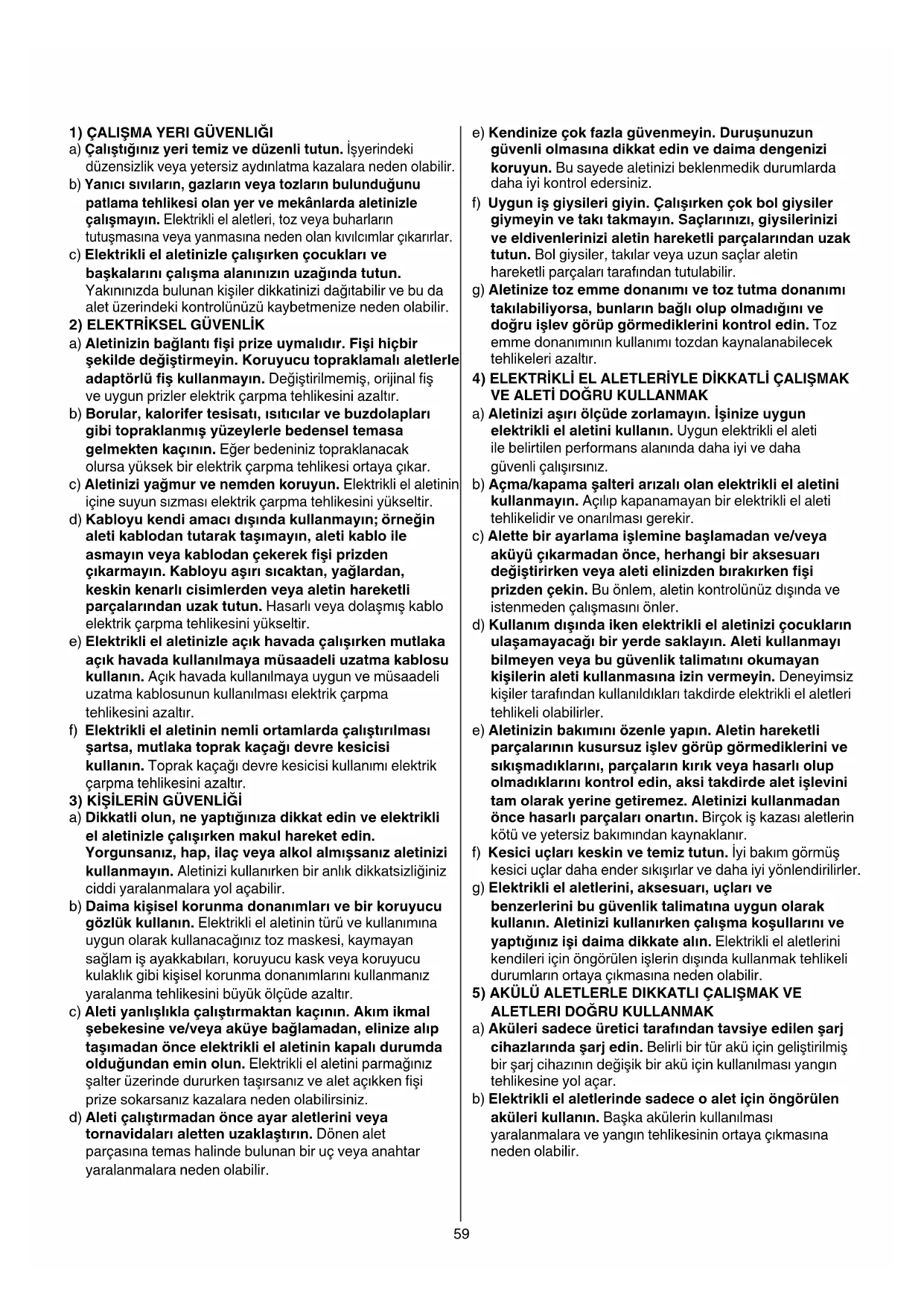 DİKKAT! Bütün uyarıları ve talimat hükümlerini