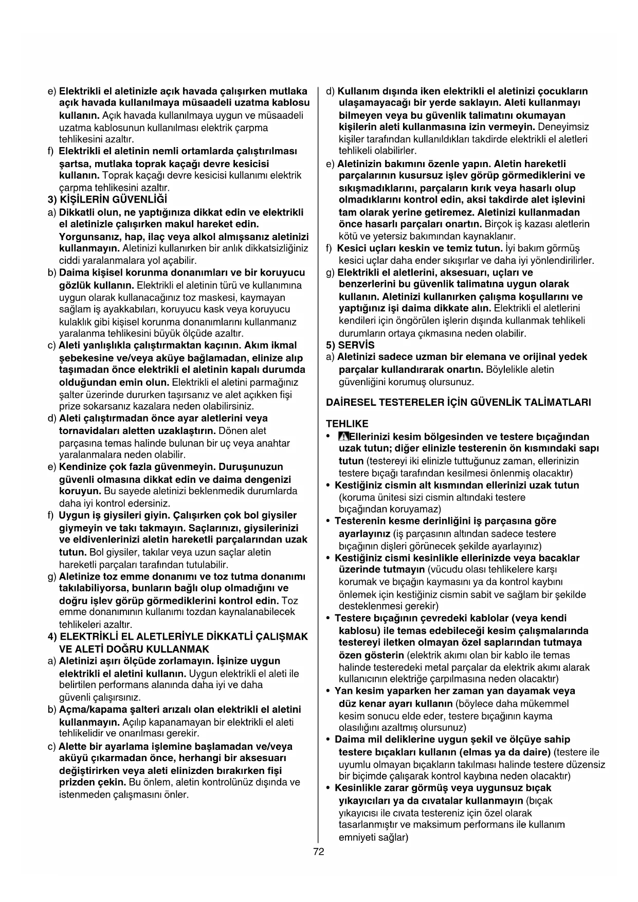 • Daima doğru tip ve keskin testere bıçakları kullanın 9