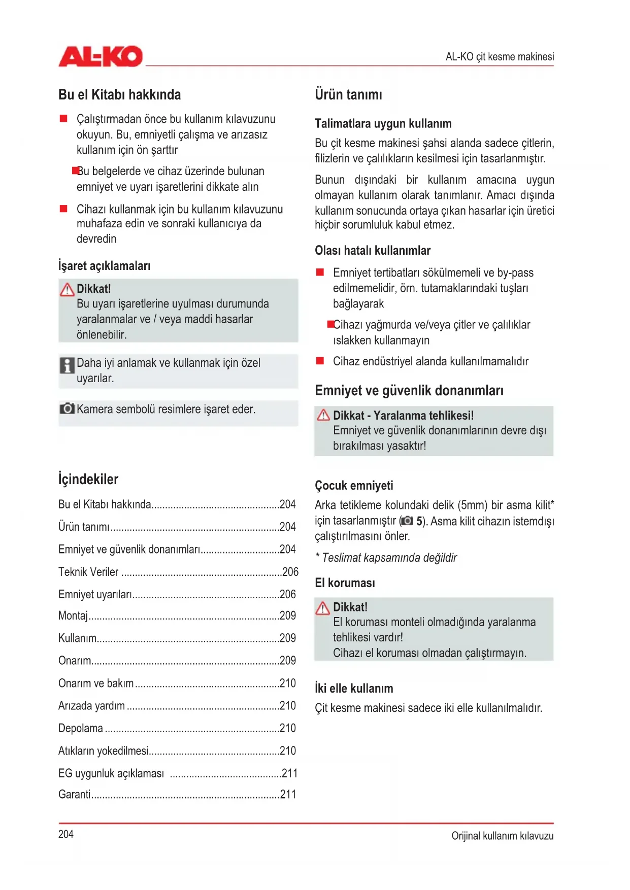 TR: Kullanım kılavuzu 204