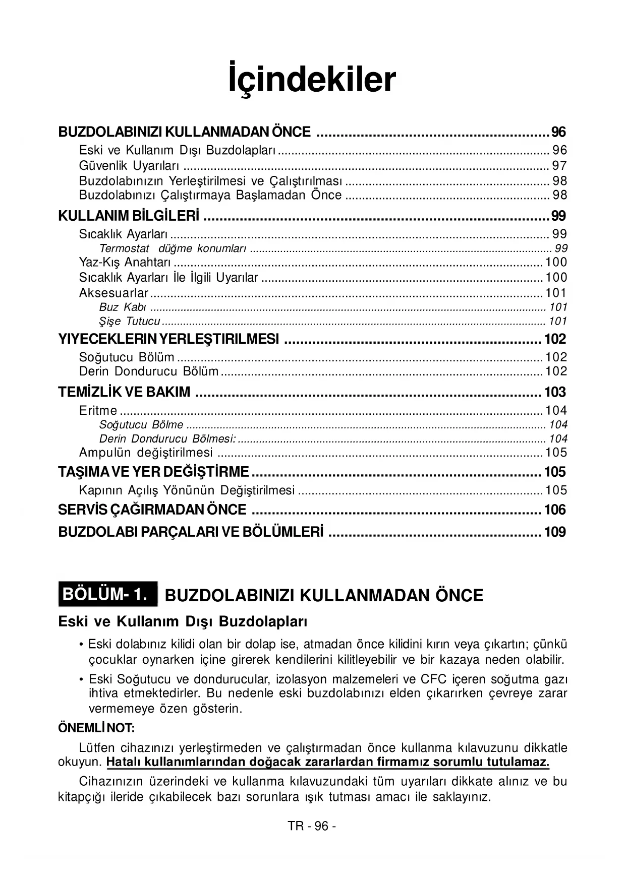 BÖLÜM- 1. BUZDOLABINIZI KULLANMADAN ÖNCE