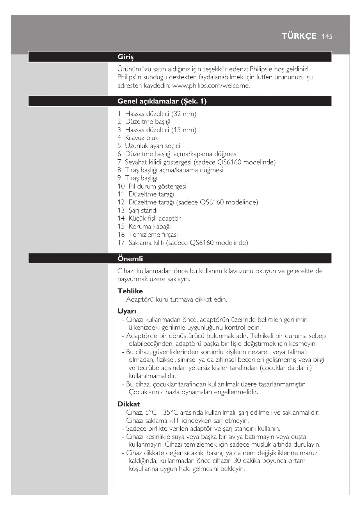 TÜRKÇE- Cihazın adaptörü veya şarj standı hasarlıysa, tehlikeye yol açmamak için