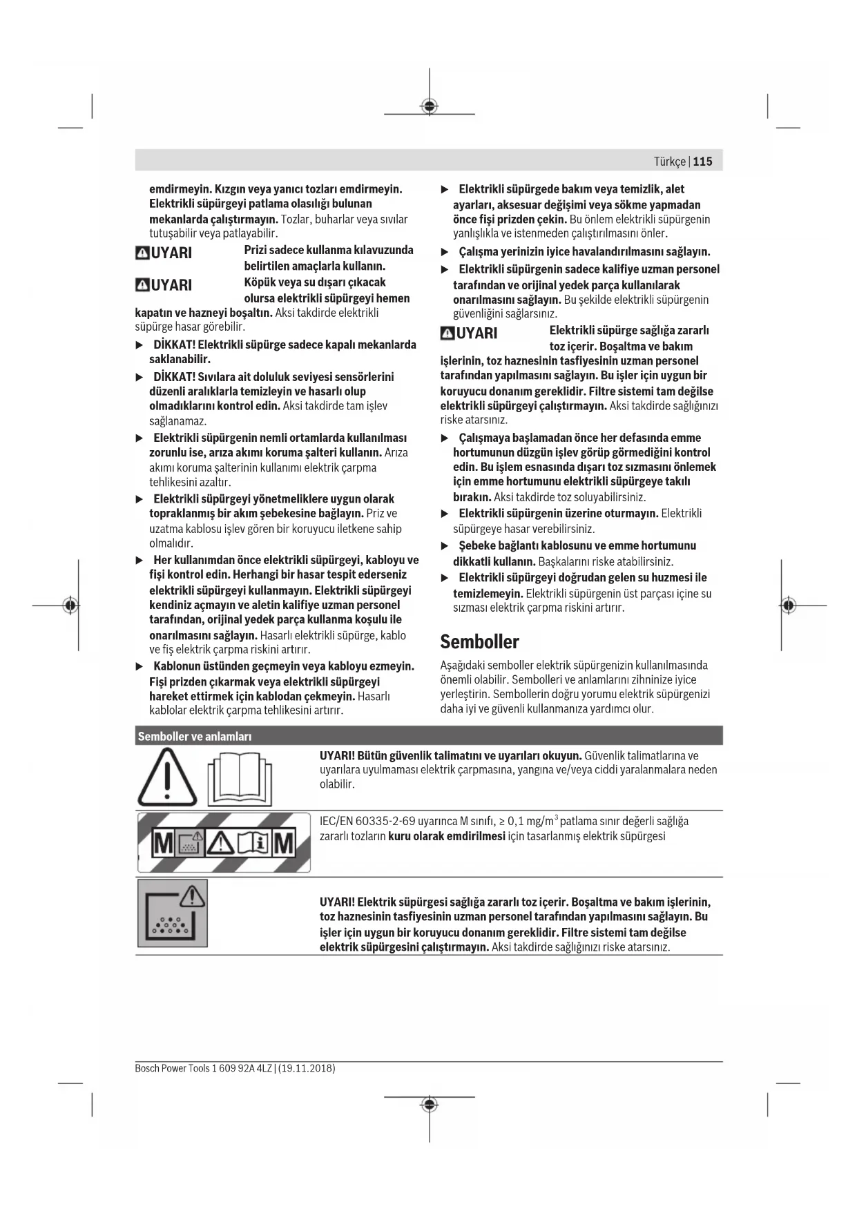 Aşağıdaki semboller elektrik süpürgenizin kullanılmasında