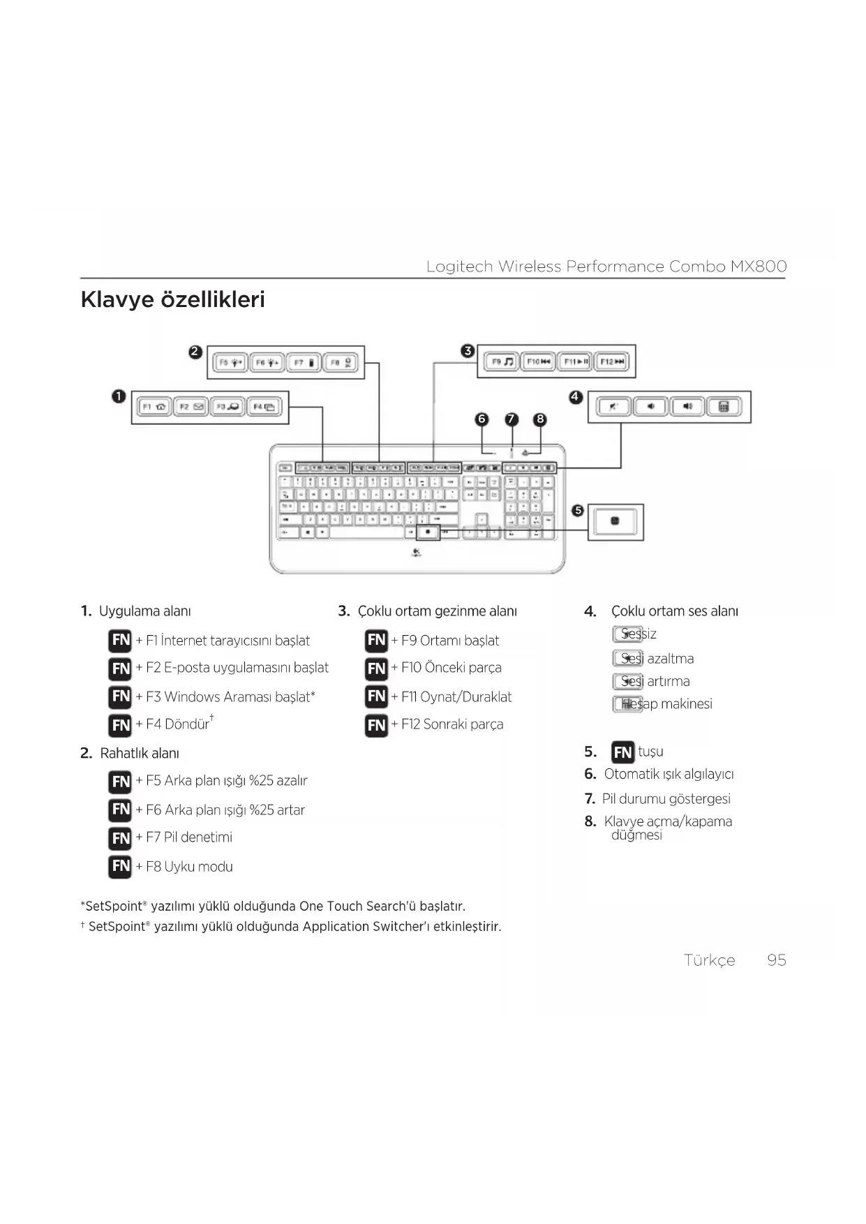 † SetSpoint® yazılımı yüklü olduğunda Application Switcher'ı etkinleştirir.