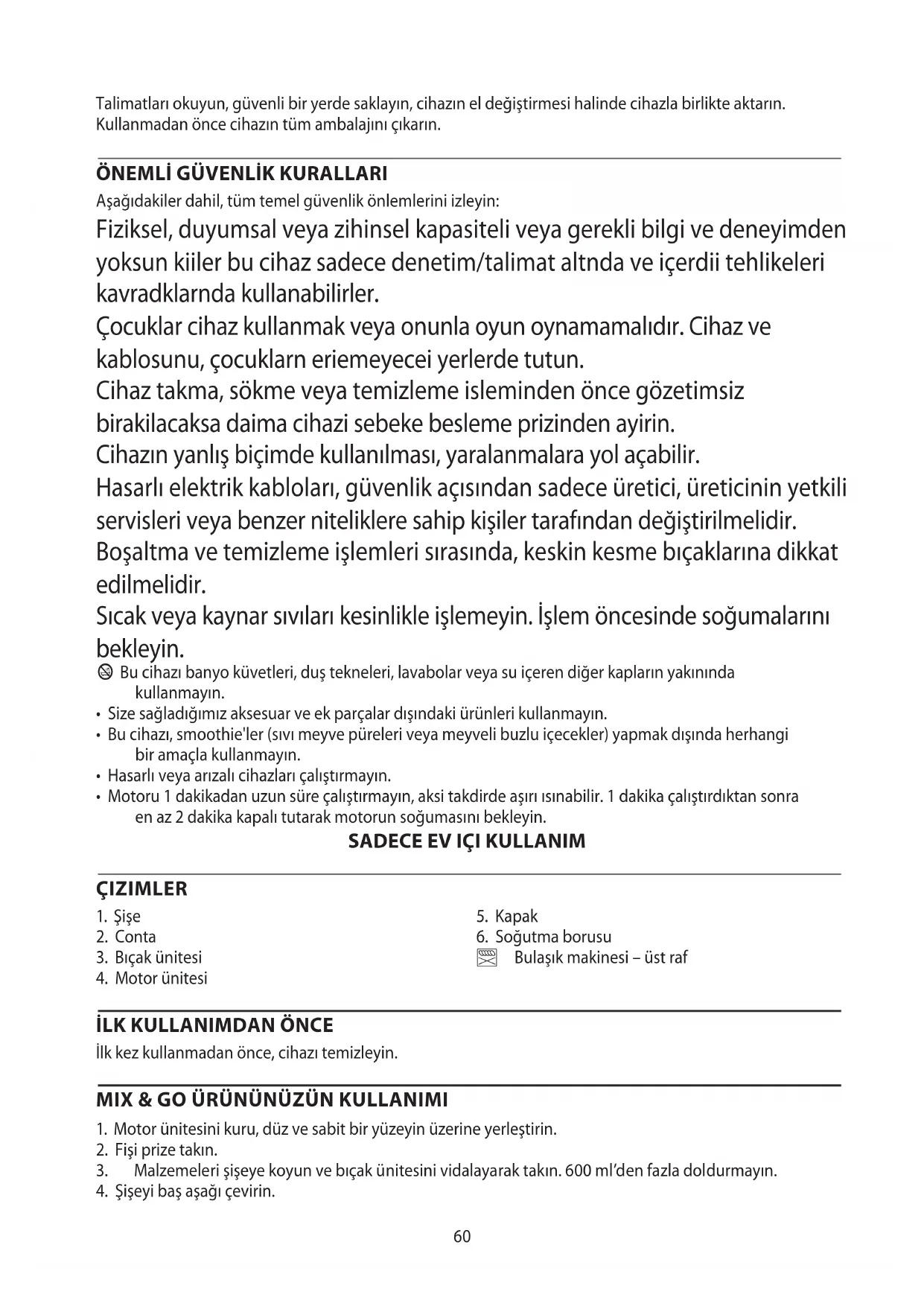 İlk kez kullanmadan önce, cihazı temizleyin. MIX & GO ÜRÜNÜNÜZÜN KULLANIMI