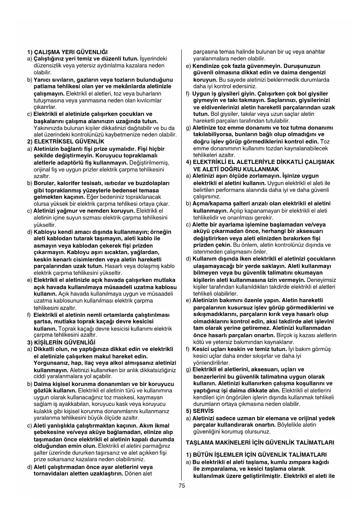 e) Elektriklielaletinizleaçıkhavadaçalışırkenmutlaka