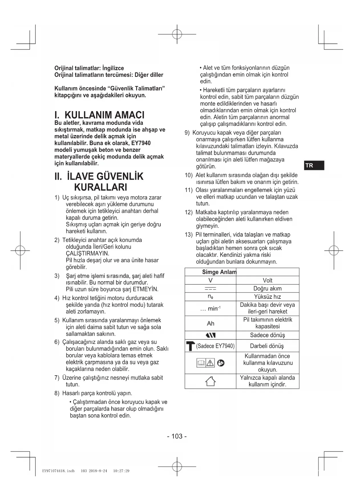 TR: Bu cihazi calistirmadan once lufen bu talimatlari dikkali bir sekilde okuyun ve bu kilavuzu gelecekte kulanmak izere saklayin.