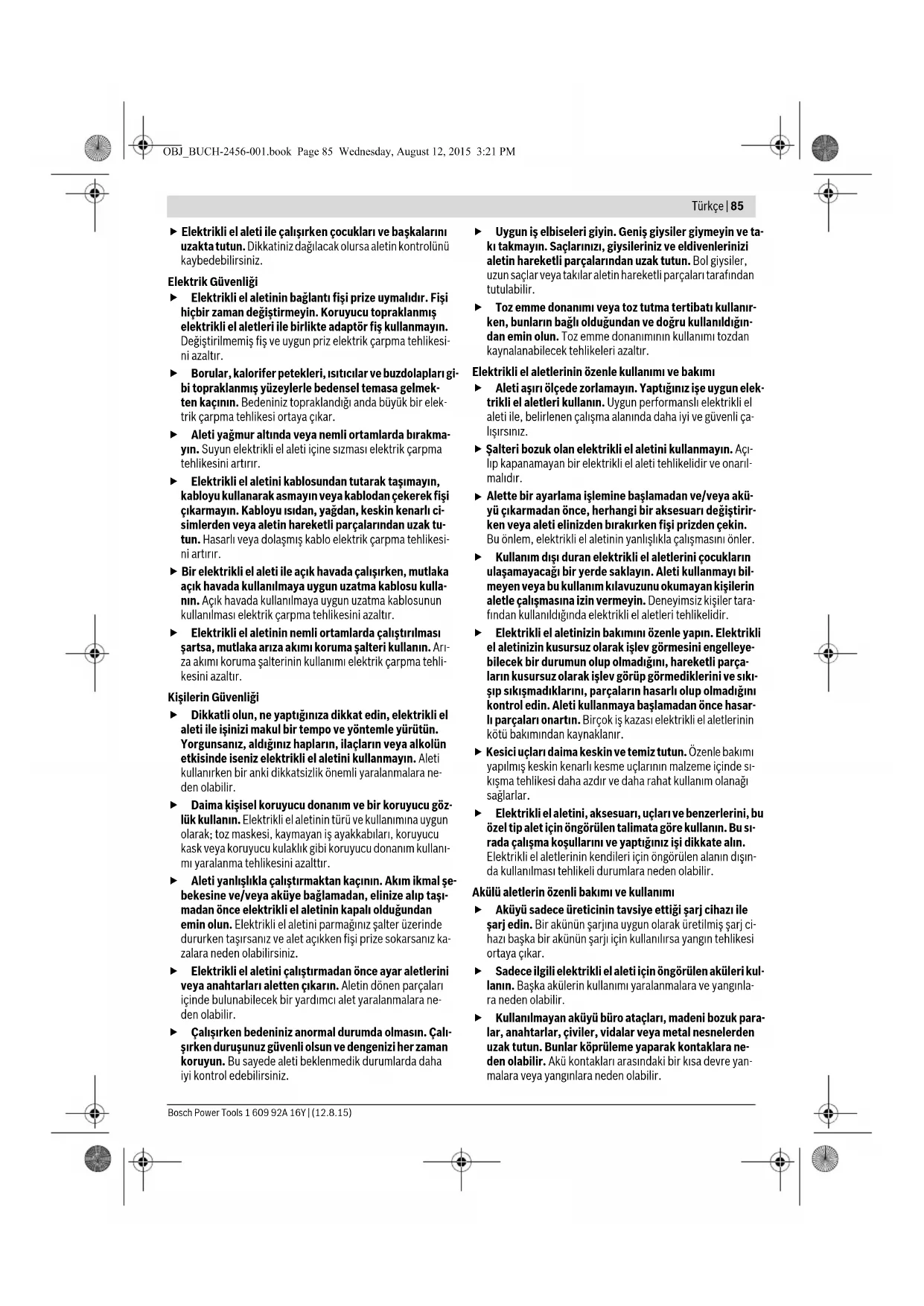 UYARI OBJ_BUCH-2456-001.book Page 84 Wednesday, August 12, 2015 3:21 PMTürkçe | 85