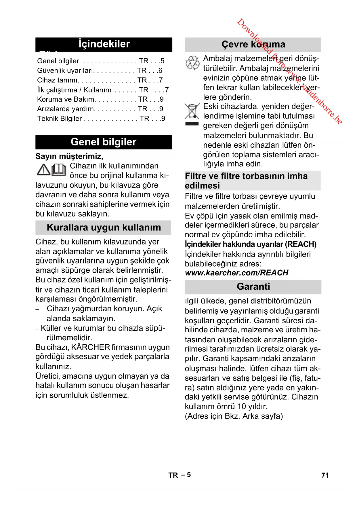 İçindekiler Genel bilgiler . . . . . . . . . . . . . . TR . . .5Güvenlik uyarıları . . . . . . . . . . . TR . . .6Cihaz tanımı . . . . . . . . . . . . . . . TR . . .7 İlk çalıştırma / Kullanım . . . . . . TR . . .7 Koruma ve Bakım. . . . . . . . . . . TR . . .9Arızalarda yardım. . . . . . . . . . . TR . . .9Teknik Bilgiler . . . . . . . . . . . . . . TR . . .9 Genel bilgiler