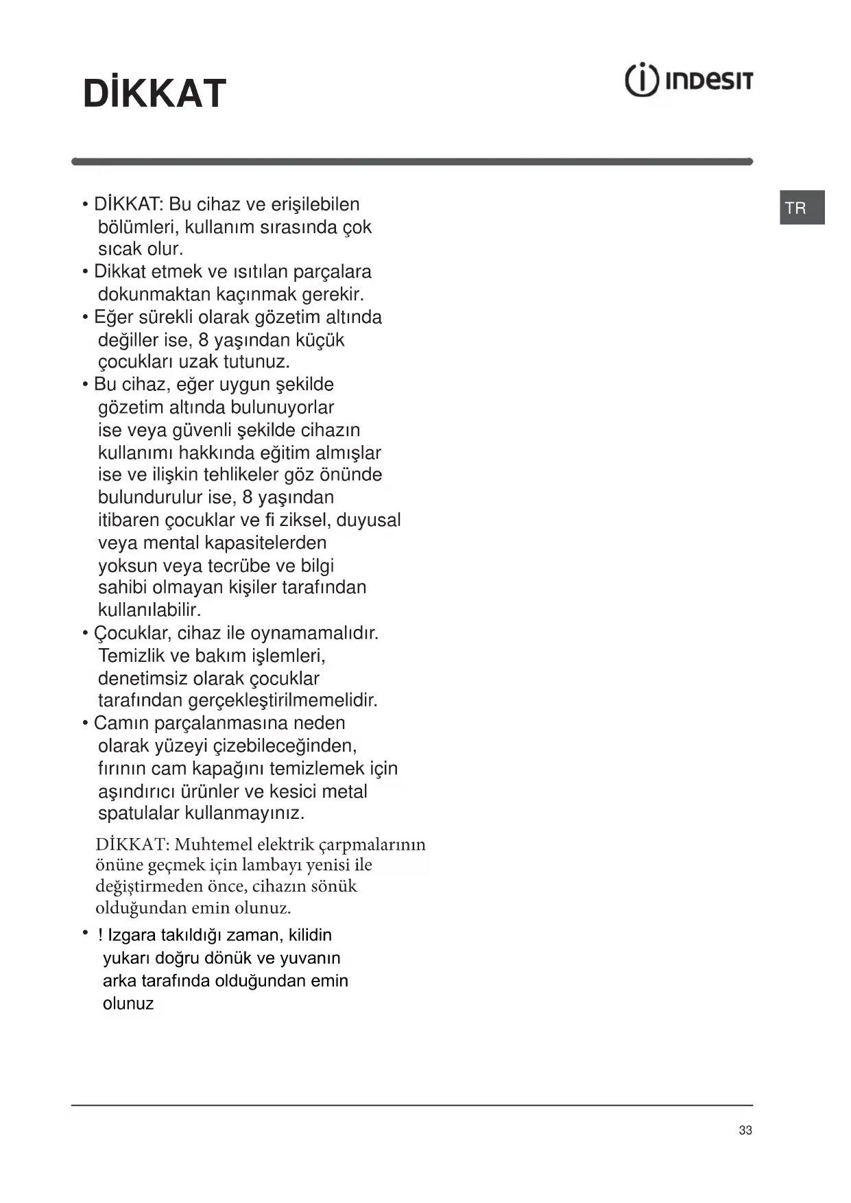 • IZGARA ve GRATEN pisirmelerinin daima firin kapagi