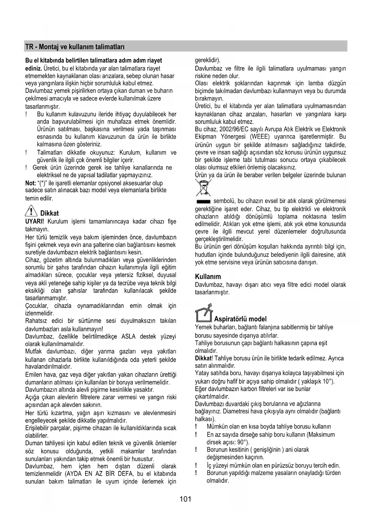 bakınız). Bu/bunlar sadece davlumbazı filtreli model