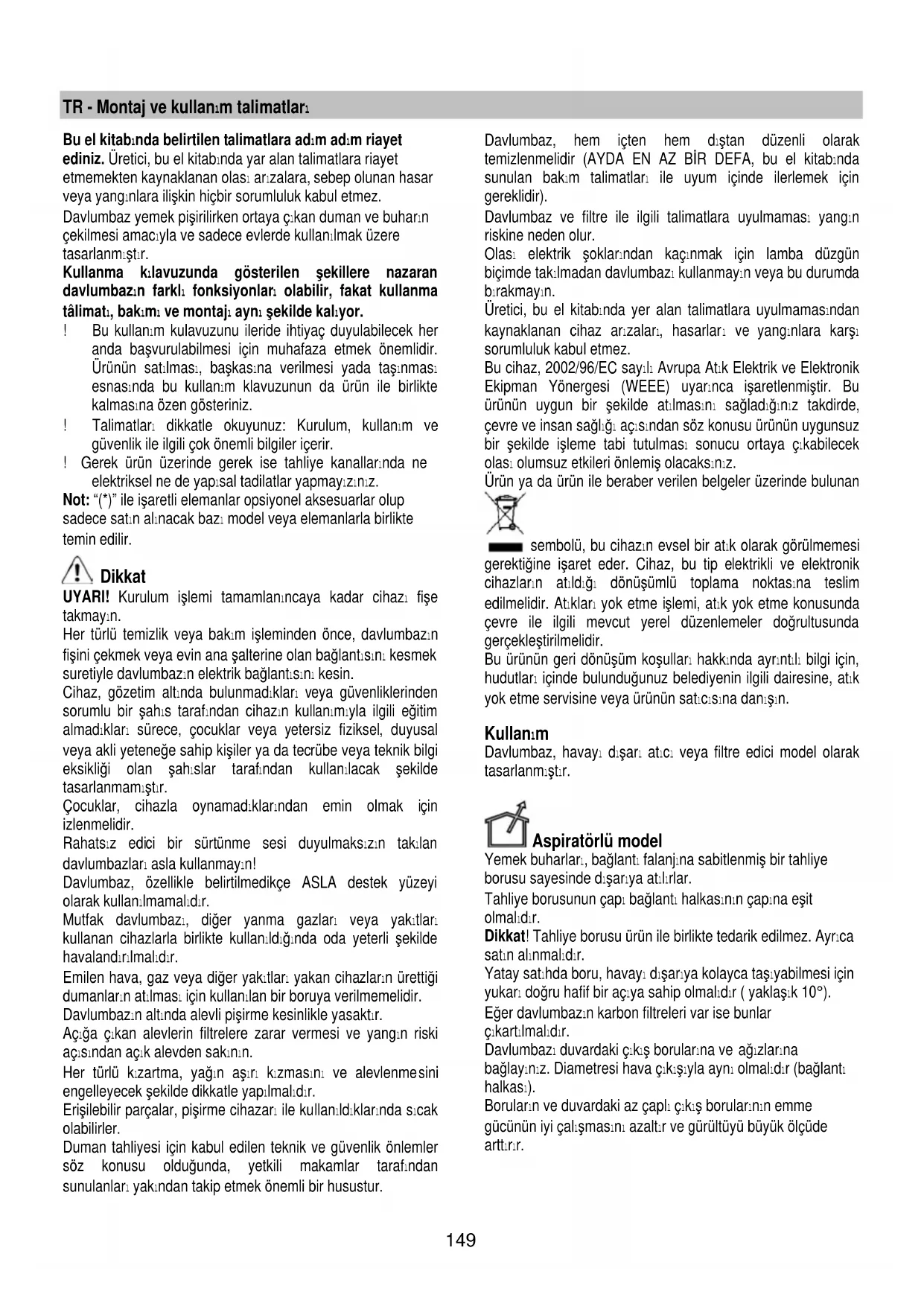 davlumbazın farklı fonksiyonları olabilir, fakat kullanma