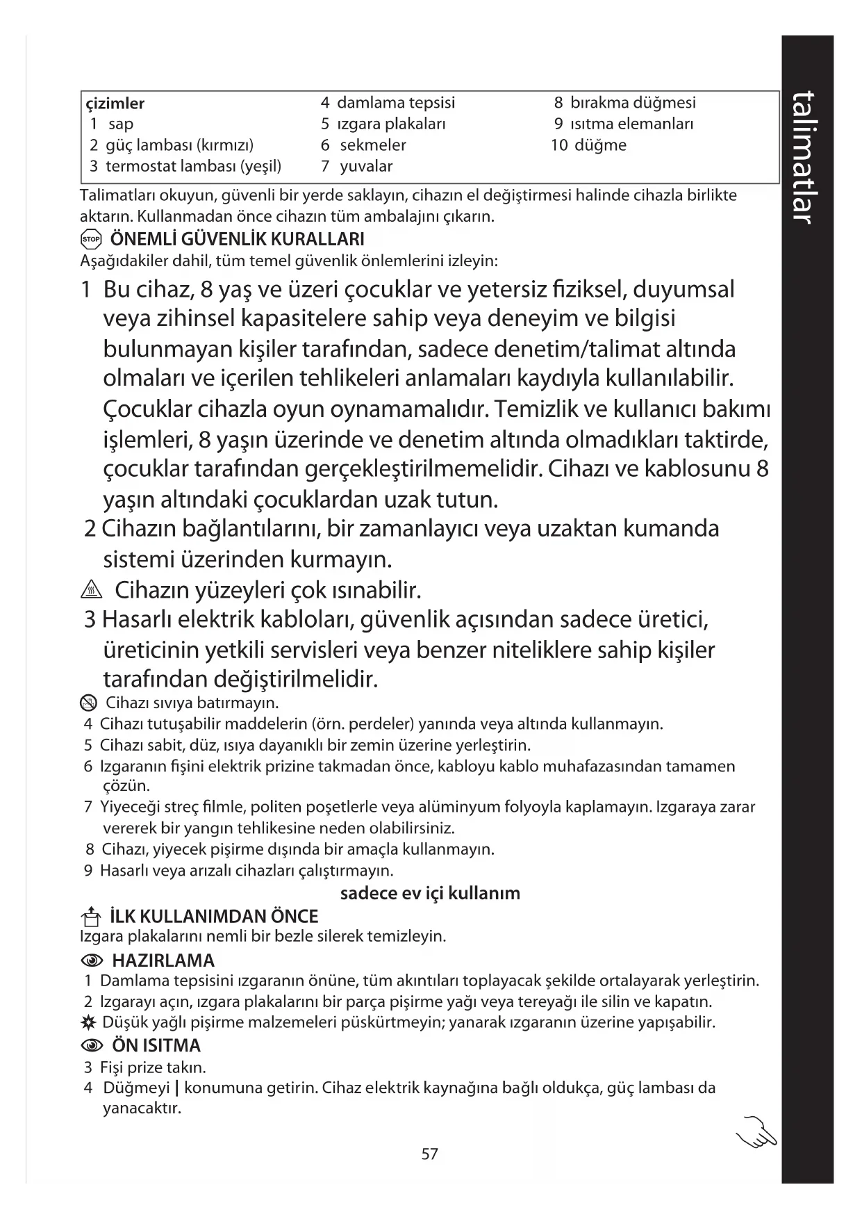 U İLK KULLANIMDAN ÖNCE Izgara plakalarını nemli bir bezle silerek temizleyin.