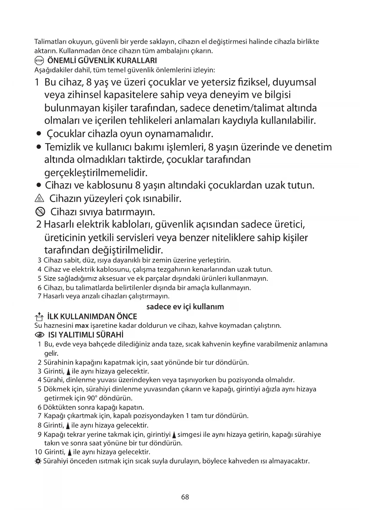 Talimatları okuyun, güvenli bir yerde saklayın, cihazın el değiştirmesi halinde cihazla birlikte