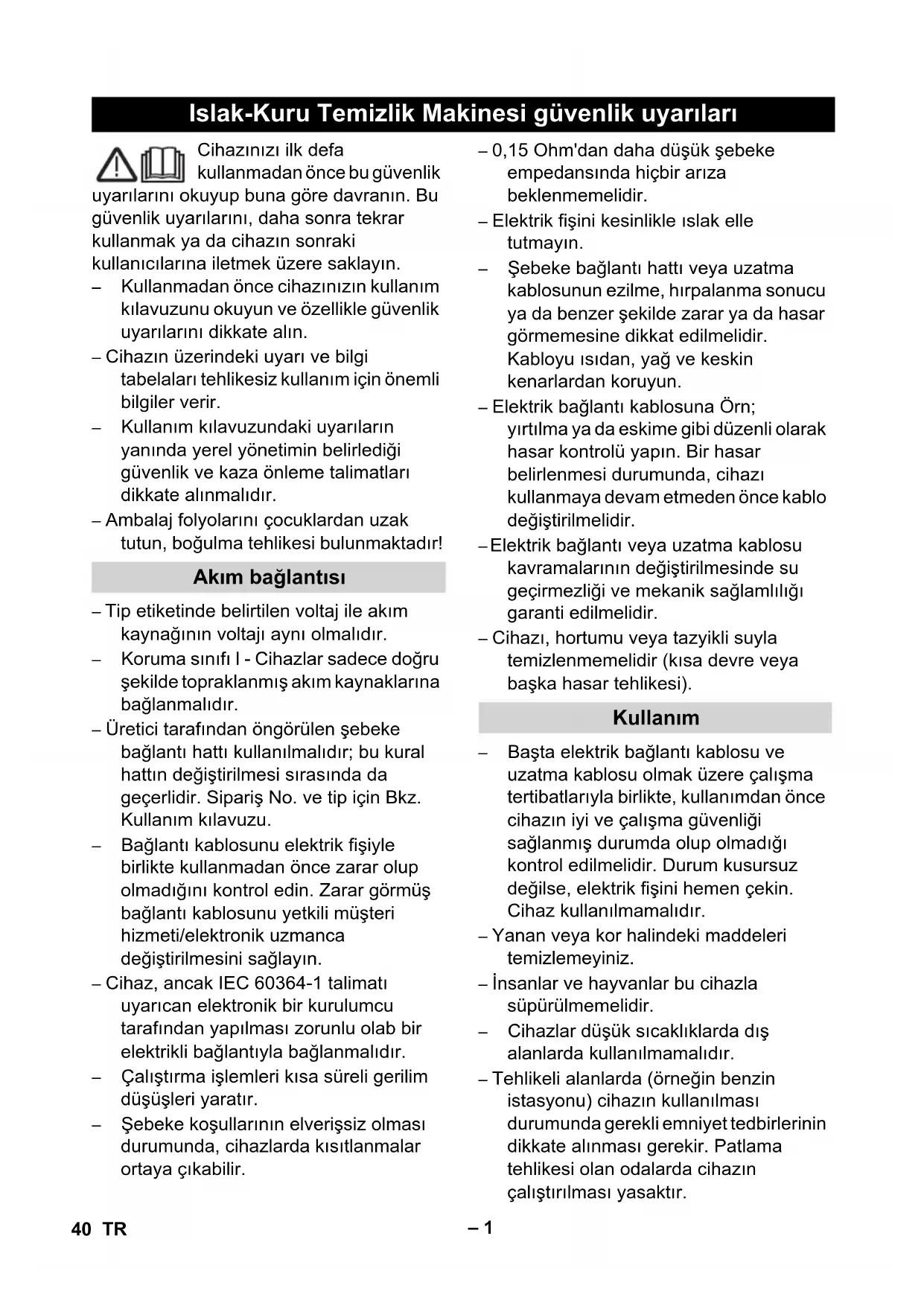 – Kullanım kılavuzundaki uyarıların