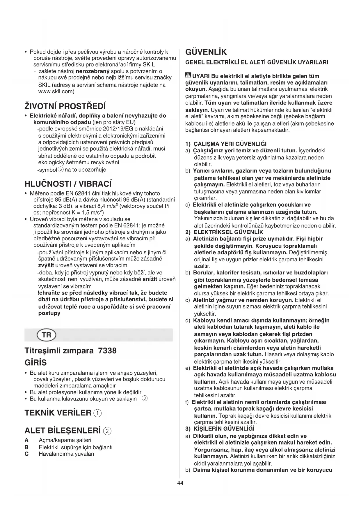 Téléchargez la notice de votre Zımpara makinesi au format PDF gratuitement ! Retrouvez votre notice 7338 AA - SKIL et reprennez votre appareil électronique en main. Sur cette page sont publiés tous les documents nécessaires à l'utilisation de votre appareil 7338 AA de la marque SKIL.