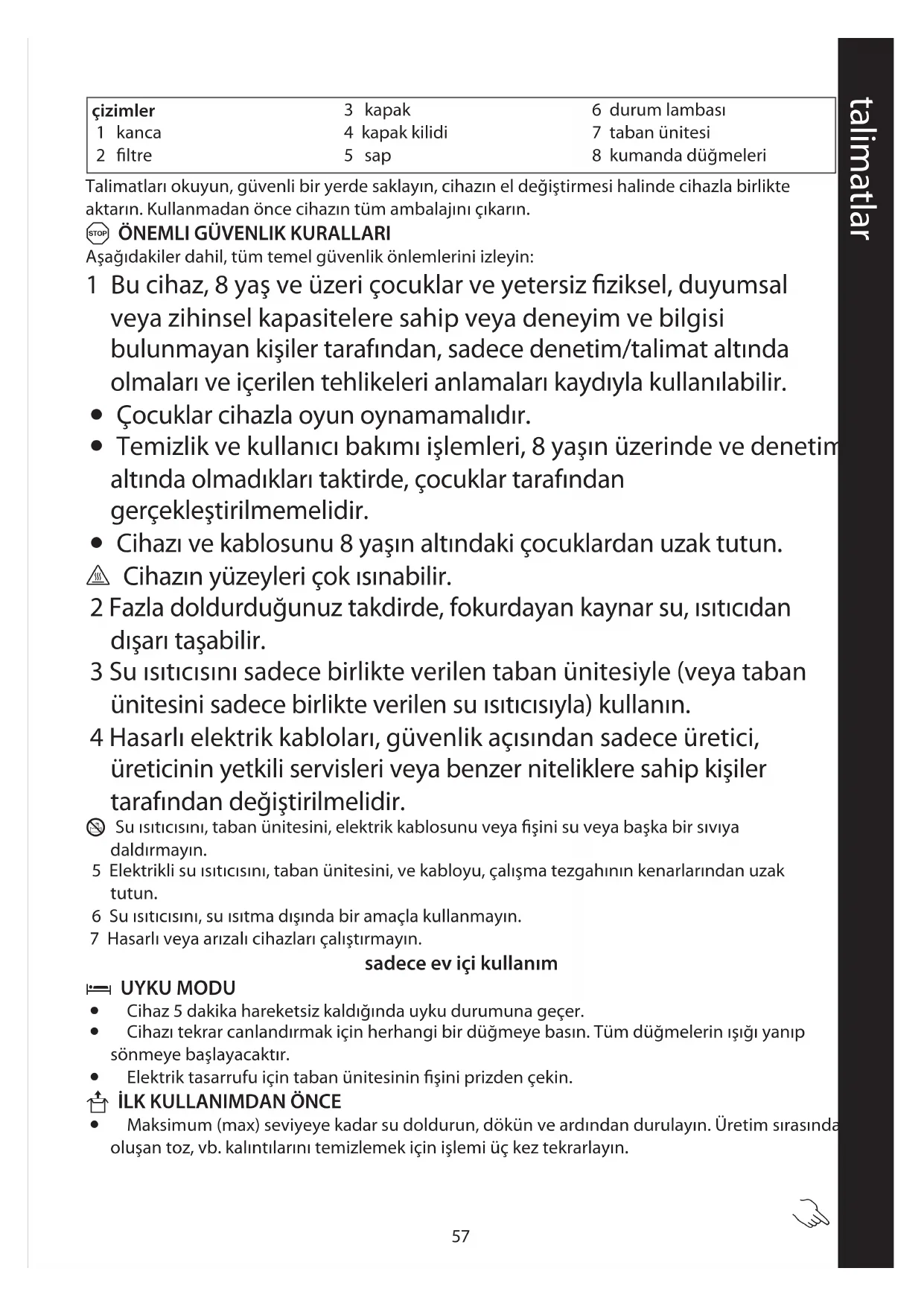 6 Su ısıtıcısını, su ısıtma dışında bir amaçla kullanmayın.