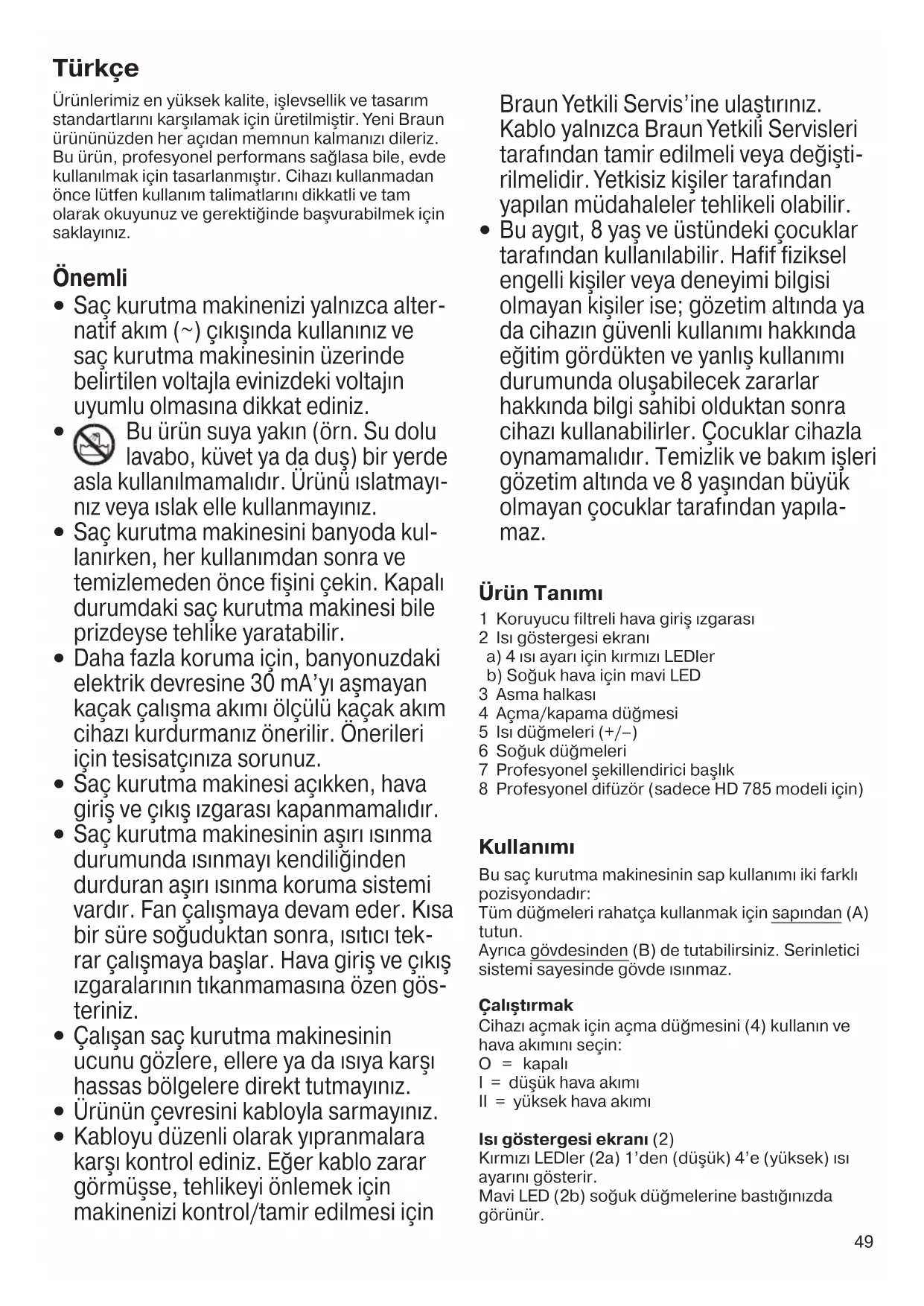 1- BRAUN ürünlerinin kullanma kılavuzunda gösterildiği şekilde kullanılması gerekmektedir. BRAUN