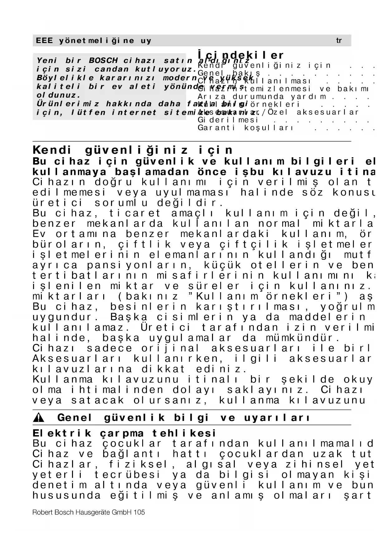 - Ôçñïýìå ôï äéêáßùìá áëëáãþí.Robert Bosch Hausgeräte GmbH 105 Ýçindekiler Kendi güvenliðiniz için p. 105