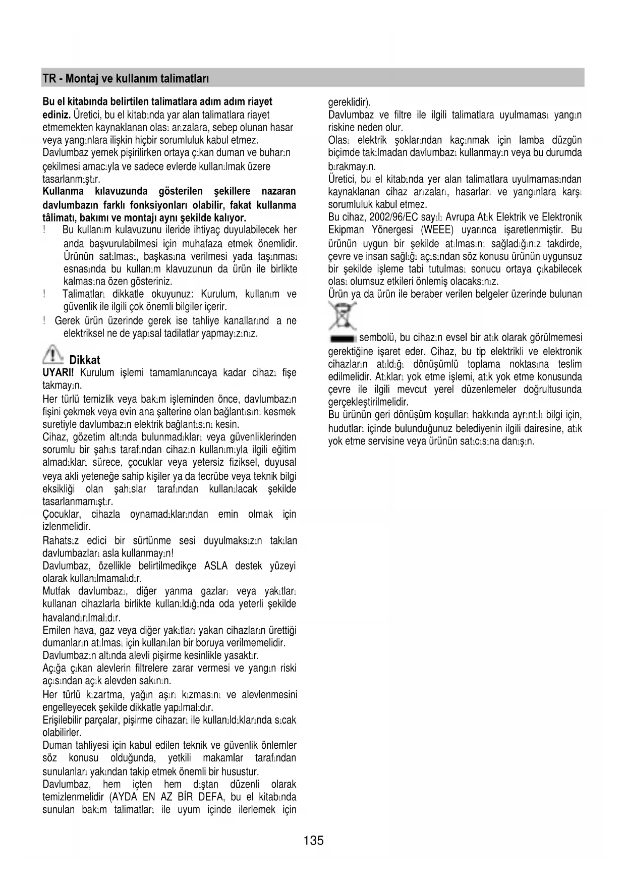 davlumbazın farklı fonksiyonları olabilir, fakat kullanma