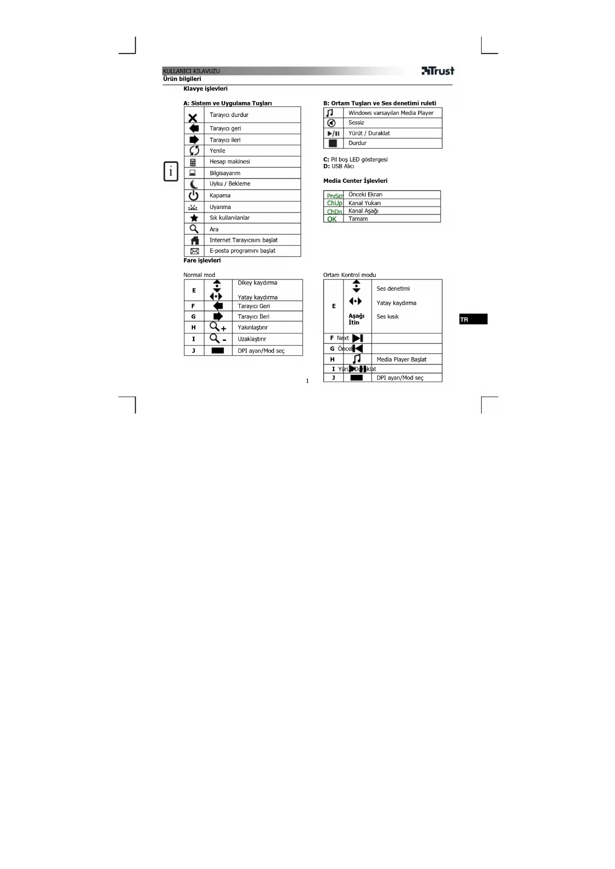 - Aygıtı nemli ortamlarda kullanmayın. Aygıtı kuru bir bezle temizleyin. Güncellenmiş Sıkça Sorulan Sorular (FAQs) bölümü, sürücü ve kullanım kılavuzları için, www.trust.com/15177 Internet adresini ziyaret edin. Yaygın servis için, www.trust.com/register web sitesine kayıt yaptırın.