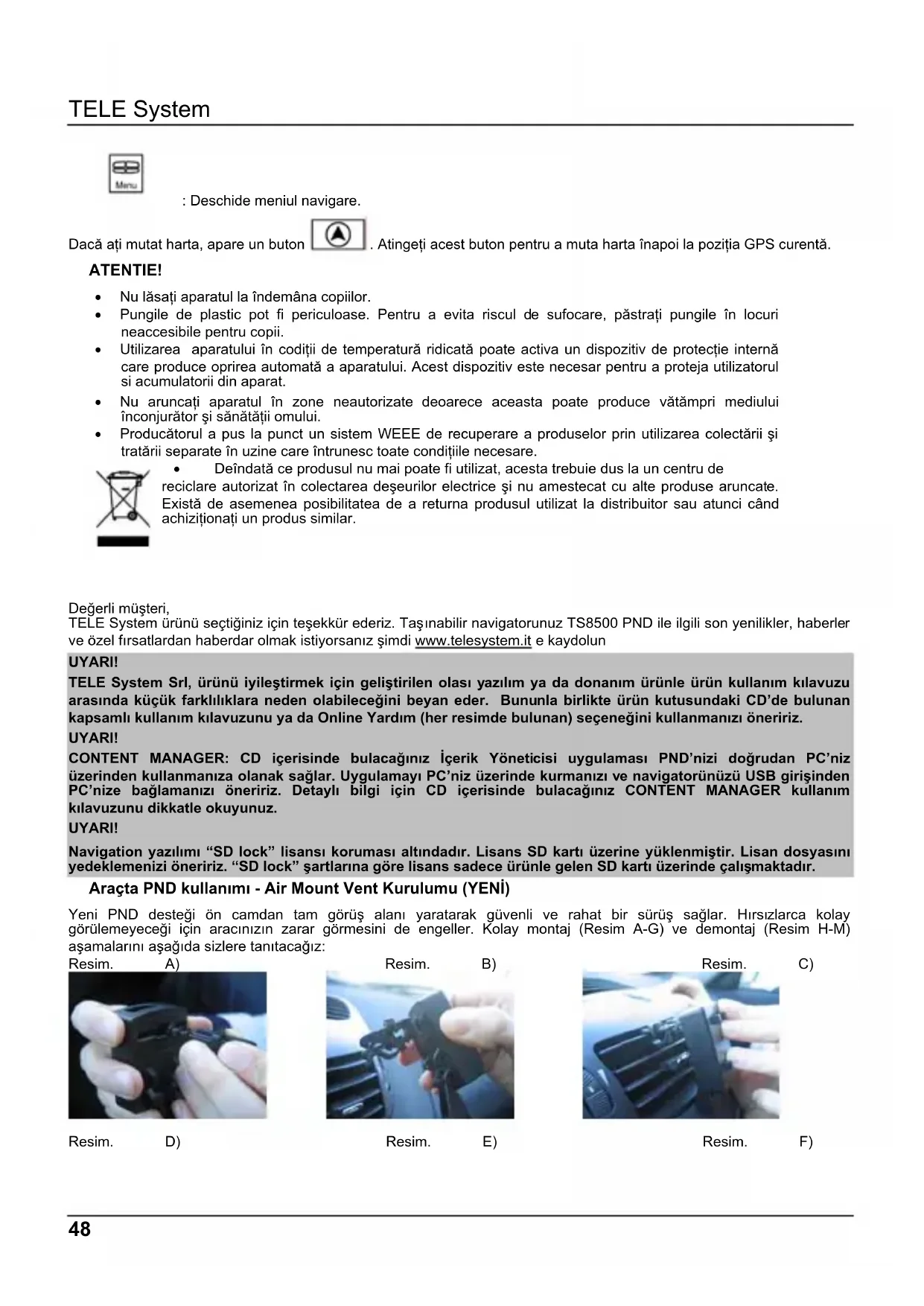CONTENT MANAGER: CD içerisinde bulacağınız İçerik Yöneticisi uygulaması PND'nizi doğrudan PC'niz üzerinden kullanmanızı olanak sağlar. Uygulamayı PC'niz üzerinde kurmanızı ve navigatorünüzü USB girişinden PC'nize bağlamanızı öneririz. Detaylı bilgi için CD içerisinde bulacağınız CONTENT MANAGER kullanım kılavuzunu dikkatle okuyunuz.
