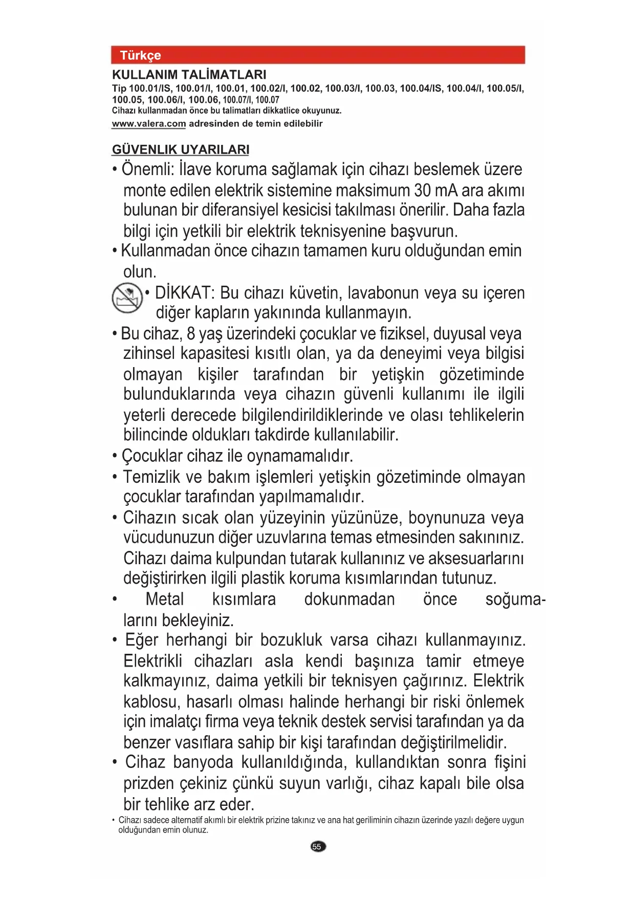 VALERA tarafınızdan alınan cihaz için aşağıdaki