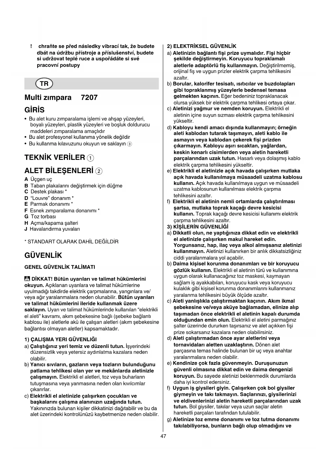* STANDART OLARAK DAHİL DEĞİLDİR GÜVENLİK GENELGÜVENLİKTALİMATI DİKKAT!Bütünuyarılarıvetalimathükümlerini