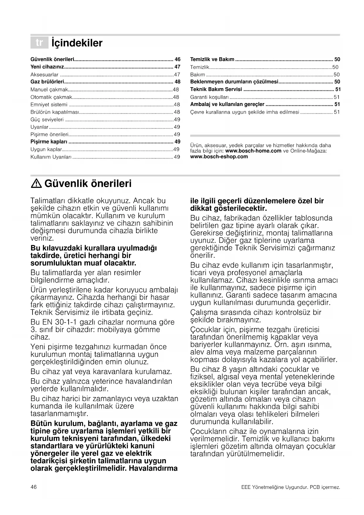 União Europeia.46 EEE Yönetmeliǧine Uygundur. PCB içermez. ô İçindekiler [tr]Kullanma kιlavuzu Güvenlik önerileri 46