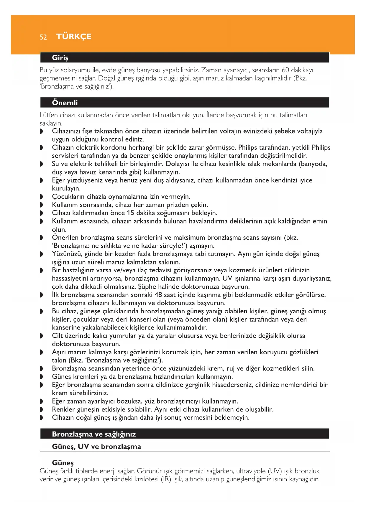 Not:Bronzlaşma seansı sonrasında cildinizde gerginlik hissederseniz, cildinize nemlendirici bir krem