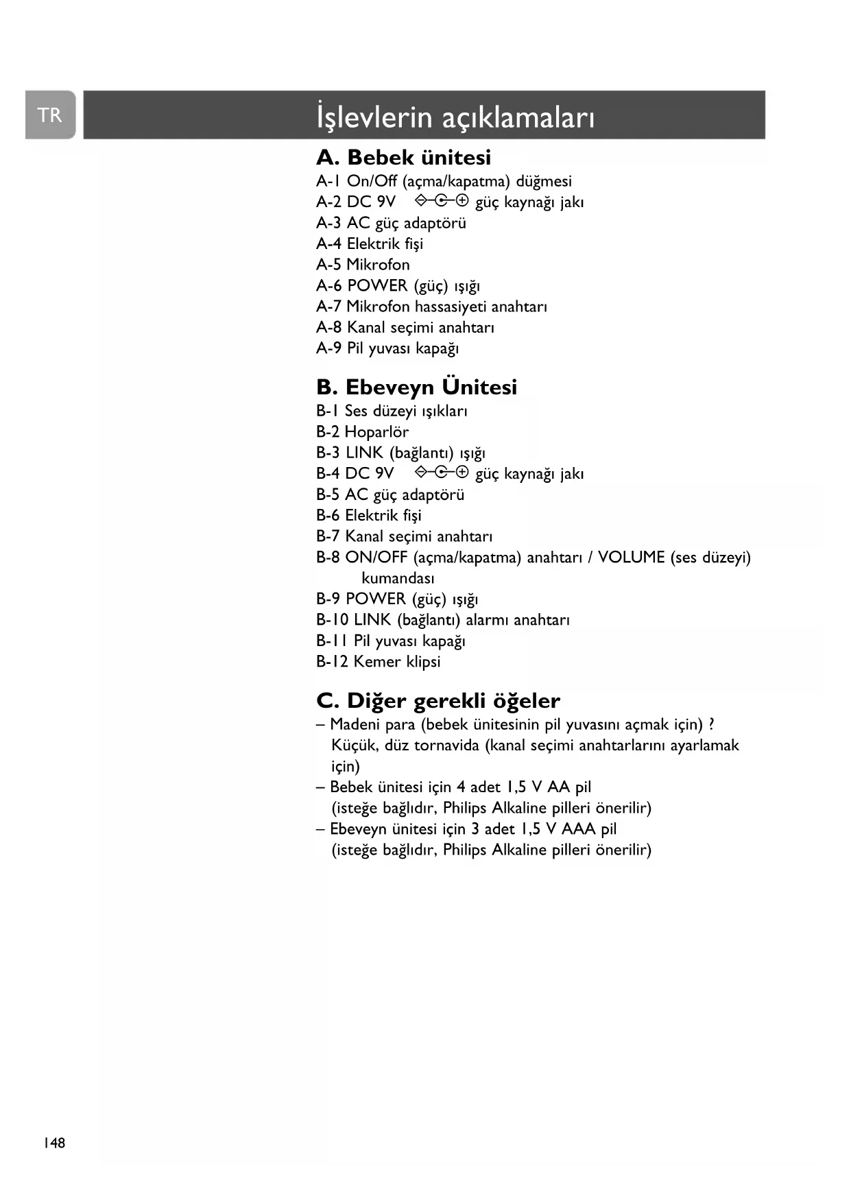 ➜ Bebek ünitesi pille kullanıma hazırdır.