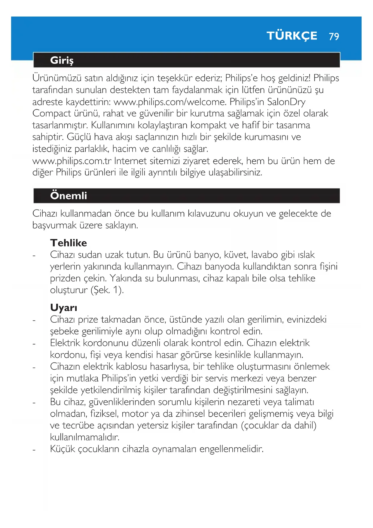 adreste kaydettirin: www.philips.com/welcome. Philips’in SalonDry