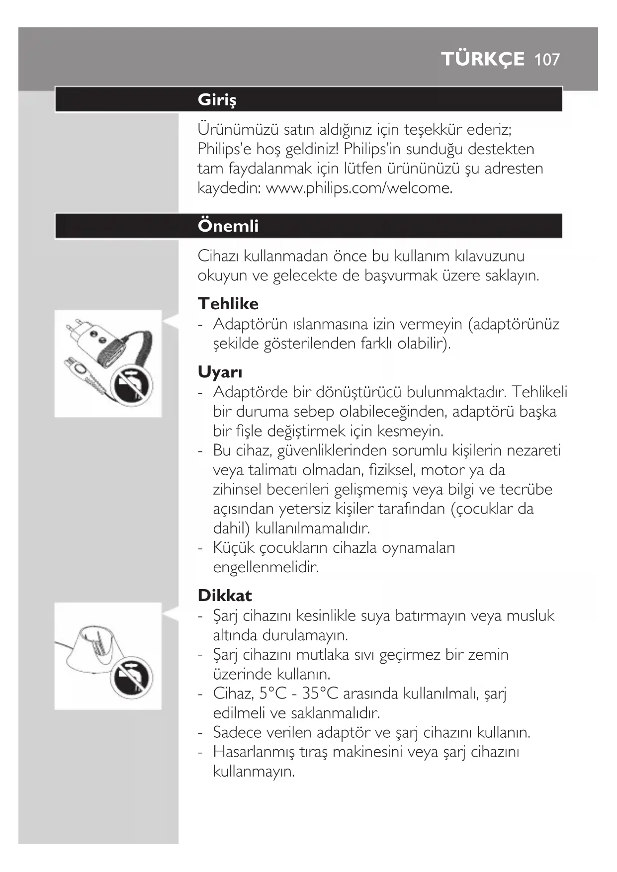 Dikkat: Tıraş makinesini ilk kez kullanmadan önce ya