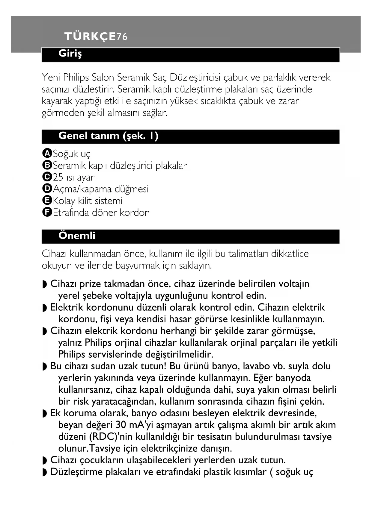 TÜRKÇE76"Cool tip" haricinde) kullanım sırasında ısınacaktır! Cildiniz ile