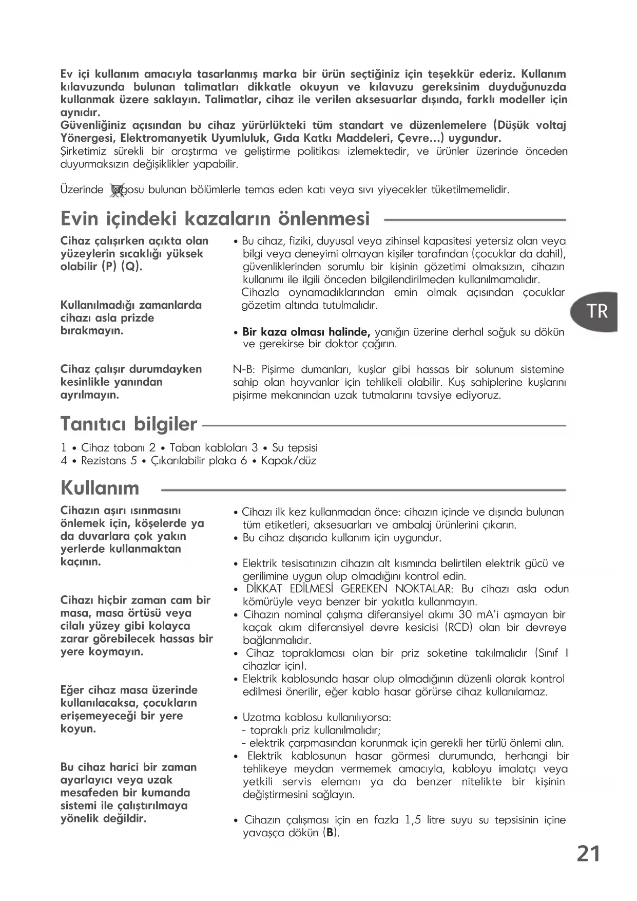 • Plaka (5), su tepsisi (3) ve tabak (6) her kullanmdan sonra gerek