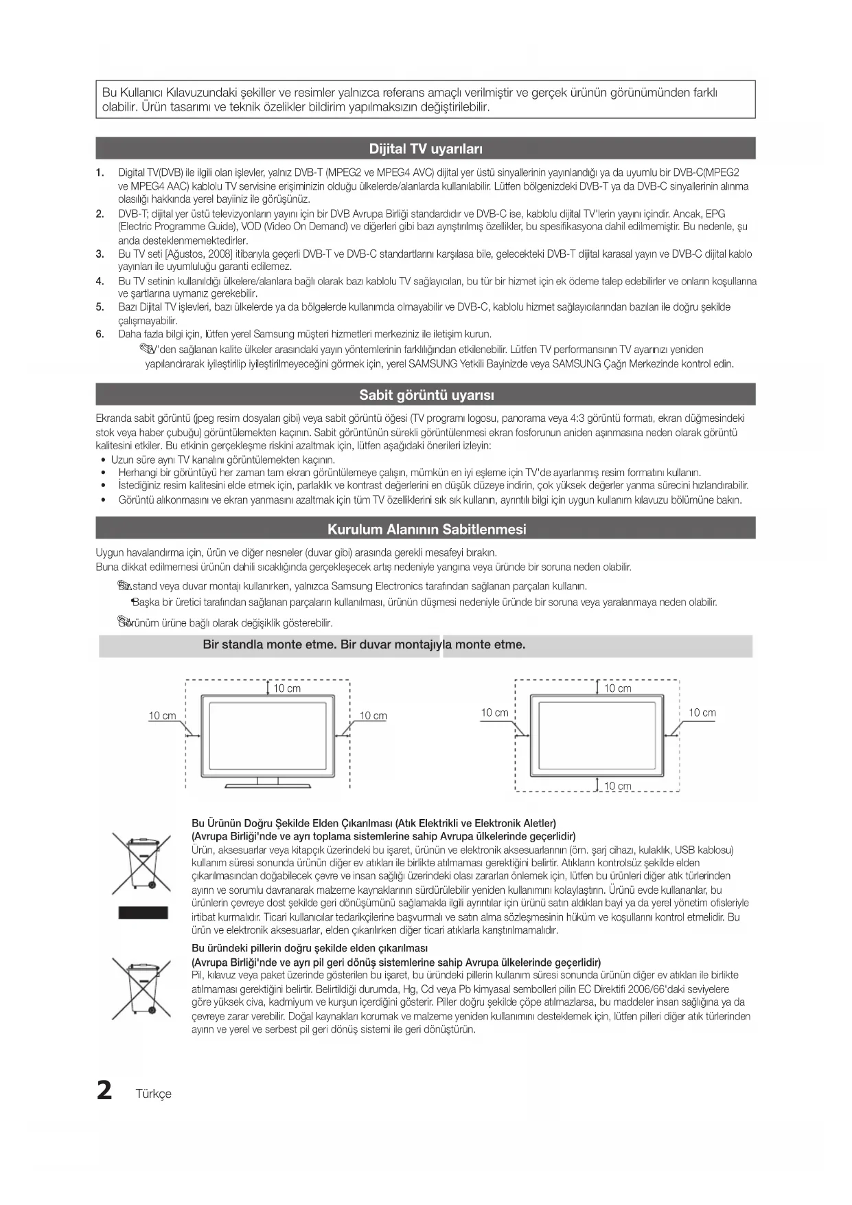 3. Bu TV seti [Ağustos, 2008] itibarıyla geçerli DVB-T ve DVB-C standartlarını karşılasa bile, gelecekteki DVB-T dijital karasal yayın ve DVB-C dijital kablo